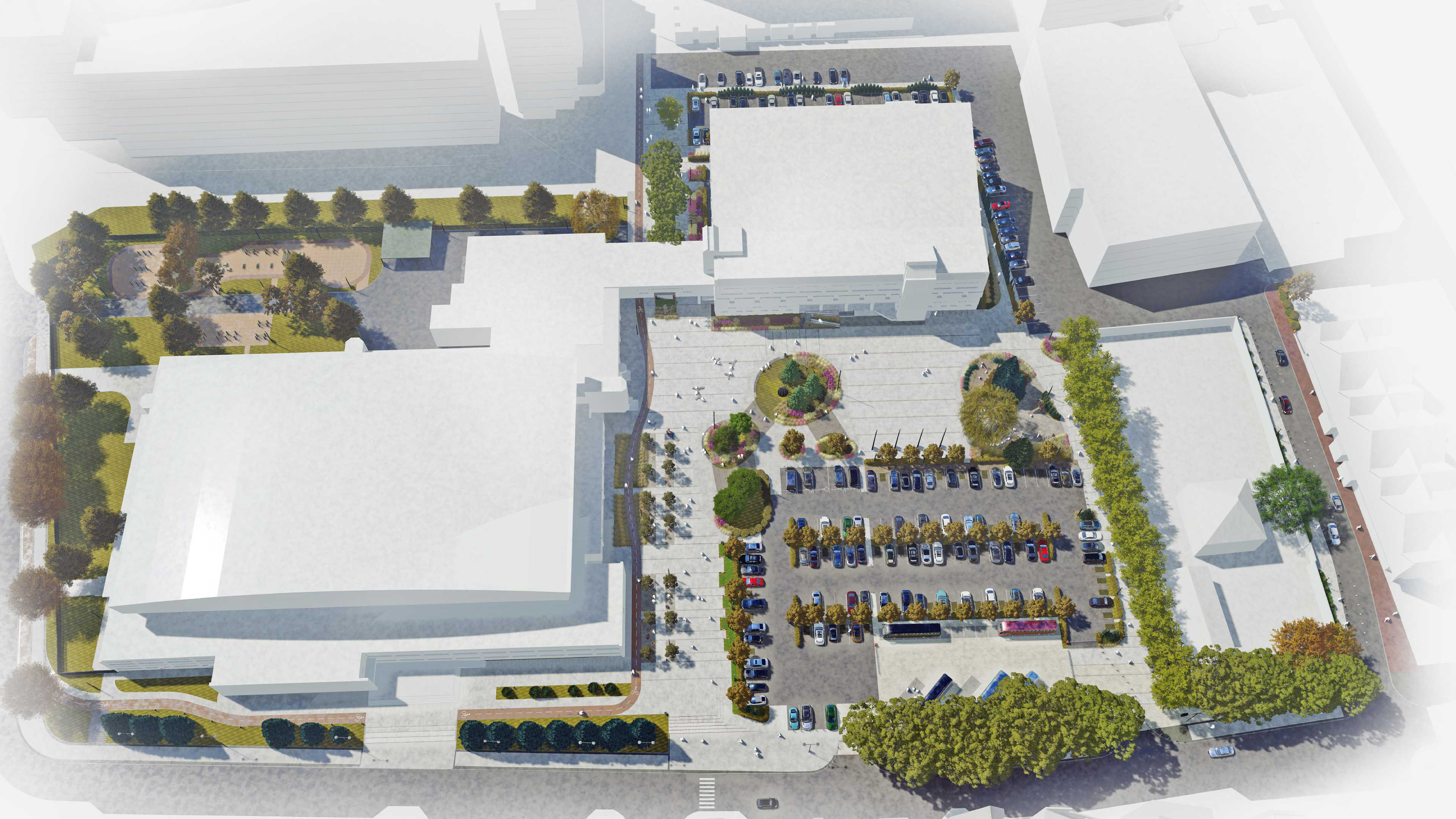 Проект подразумевает насыщение территории новыми функциональными зонами, появление большой туристической площади с возможностью парковки автобусов для высадки пассажиров, ожидания и возможной стоянки, новой пешеходной связи вдоль территории водоканала с аллеей, размещёнными вдоль неё НТО, детскими площадками, зонами отдыха и ожидания, организацию нового велосипедного маршрута, соединяющего несколько направлений движения, станцию велоремонта; устройство зелёных насаждений и увеличение вместимости парковки за счёт реорганизации территории, оформление и усиление нового пешеходного маршрута, от строящегося моста на остров Канта, вдоль улицы Мариупольской, в направлении парка Победы ("Аллея Чемпионов"). Создание новых физкультурных площадок на территории самого спорткомплекса. Организация комфортного пешеходного движения во всех примыкающих к участку направлениях.