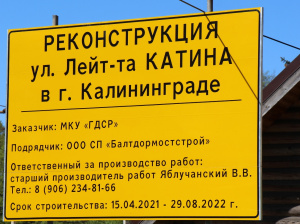 В соответствии с обращением ООО СП «Балтдормостстрой», в целях обеспечения безопасности дорожного движения при выполнении работ по объекту «Реконструкция ул. Лейт. Катина», продлевается закрытие движения транспорта до 1 июля 2022 года.