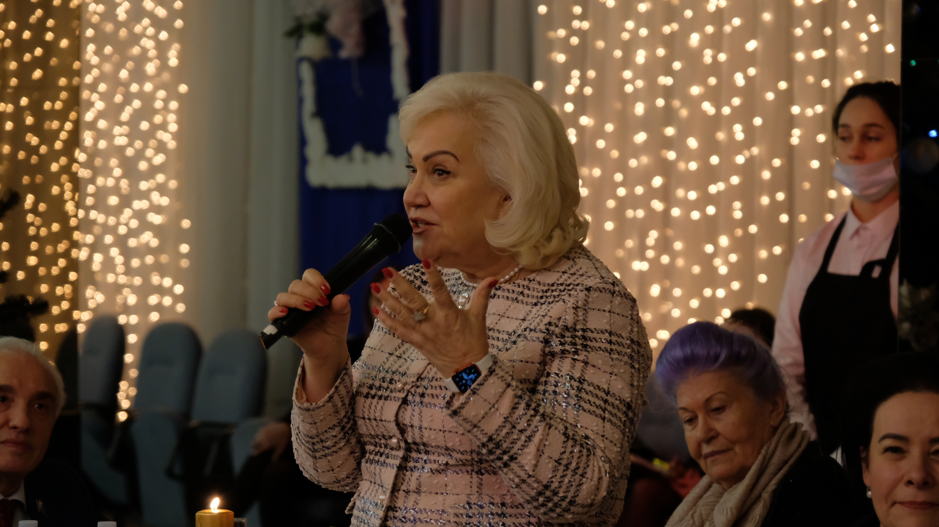 Елена Дятлова поздравила собравшихся с наступающими новогодними праздниками и высказала слова благодарности в адрес почетных граждан, причастных к судьбе города. Рассказала глава администрации о результатах работы этого года, о важных и нужных объектах, которые открылись в этом году, а также планируется открыть в преддверии нового года.