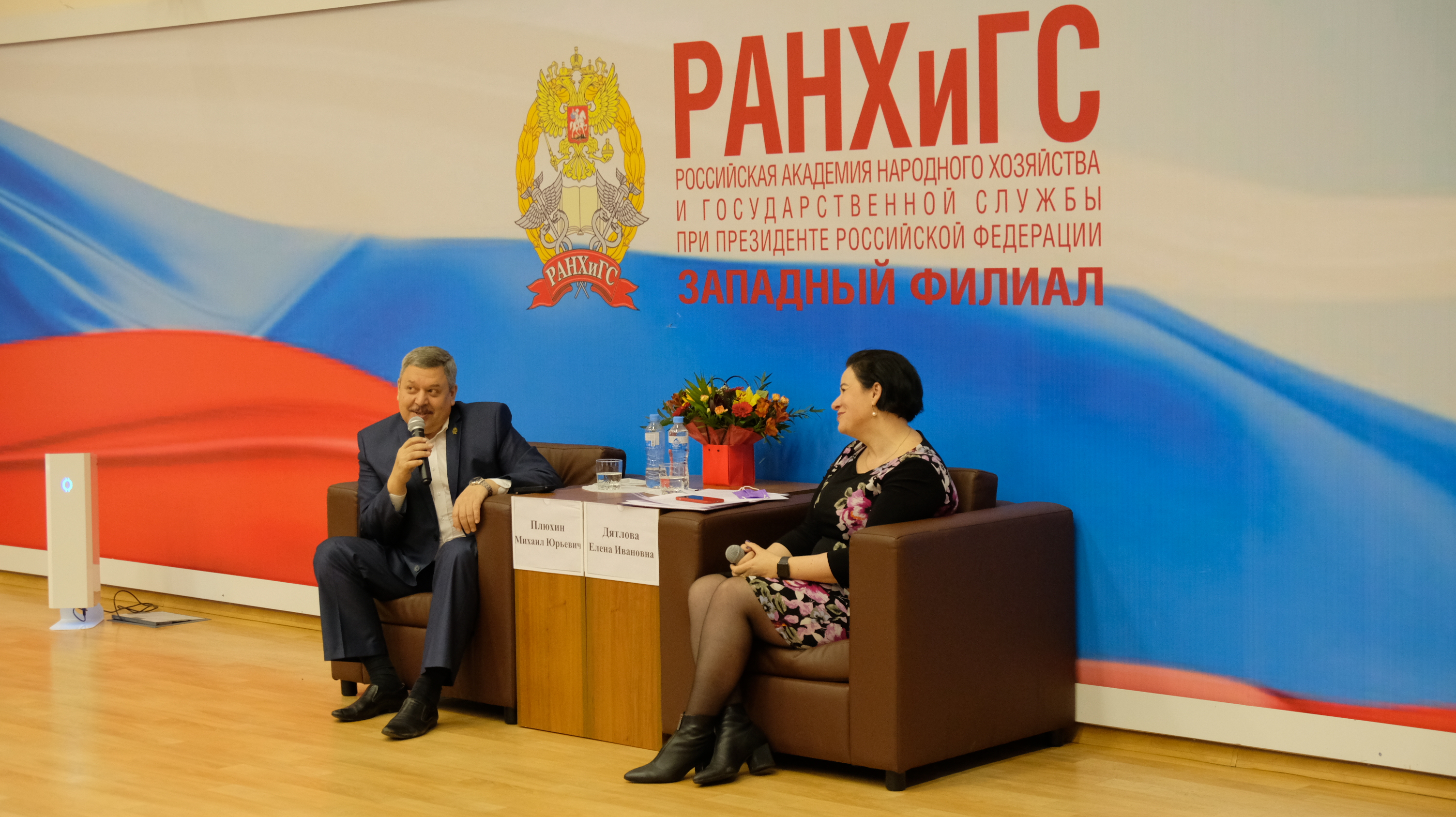 Встреча прошла в конференц-зале филиала академии. Модератором встречи выступил директор западного филиала РАНХиГС Михаил Плюхин.