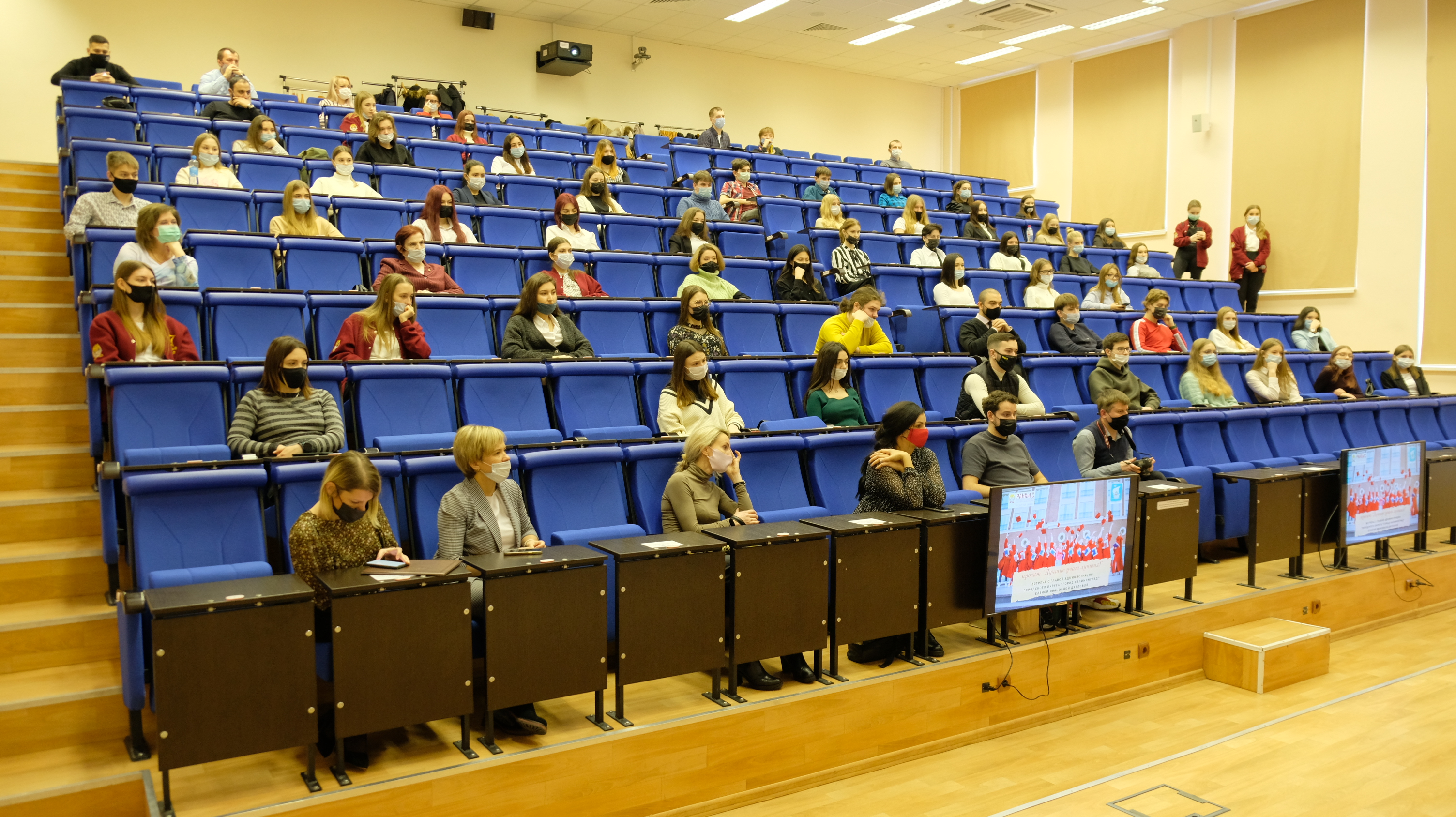 Глава администрации Калининграда Елена Дятлова в праздничный день встретилась со студентами западного филиала Российской академии народного хозяйства и государственной службы при Президенте Российской Федерации.