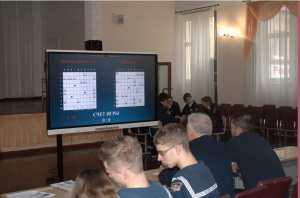 Интеллектуальный этап проходил в форме игры «Морской бой». Кадеты проверили свои знания в 10 областях знаний: астрономия, история, естествознание, военное дело, география и основы безопасности жизнедеятельности. Командам нужно было продемонстрировать не только широту кругозора, но и быстроту реакции, умение нестандартно мыслить и проявить командный дух.