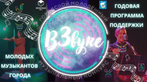 «ВЗвуке» - это работа с молодыми музыкантами разных жанров и их поддержка в виде открытых мастер-классов и курсов. В рамках программы планируется организация и проведение мастер-классов, арт-терапевтических сессий, выступлений на различных площадках города, съёмок промороликов, фотосессий и много другого.