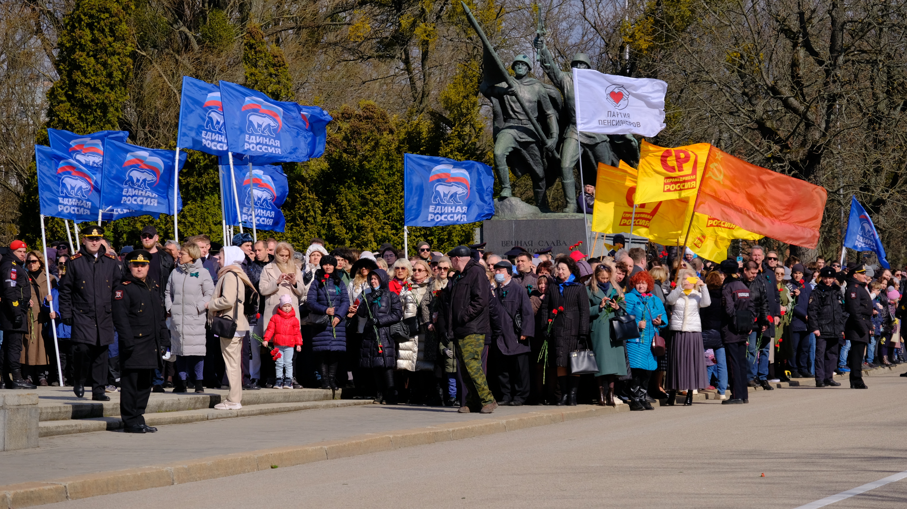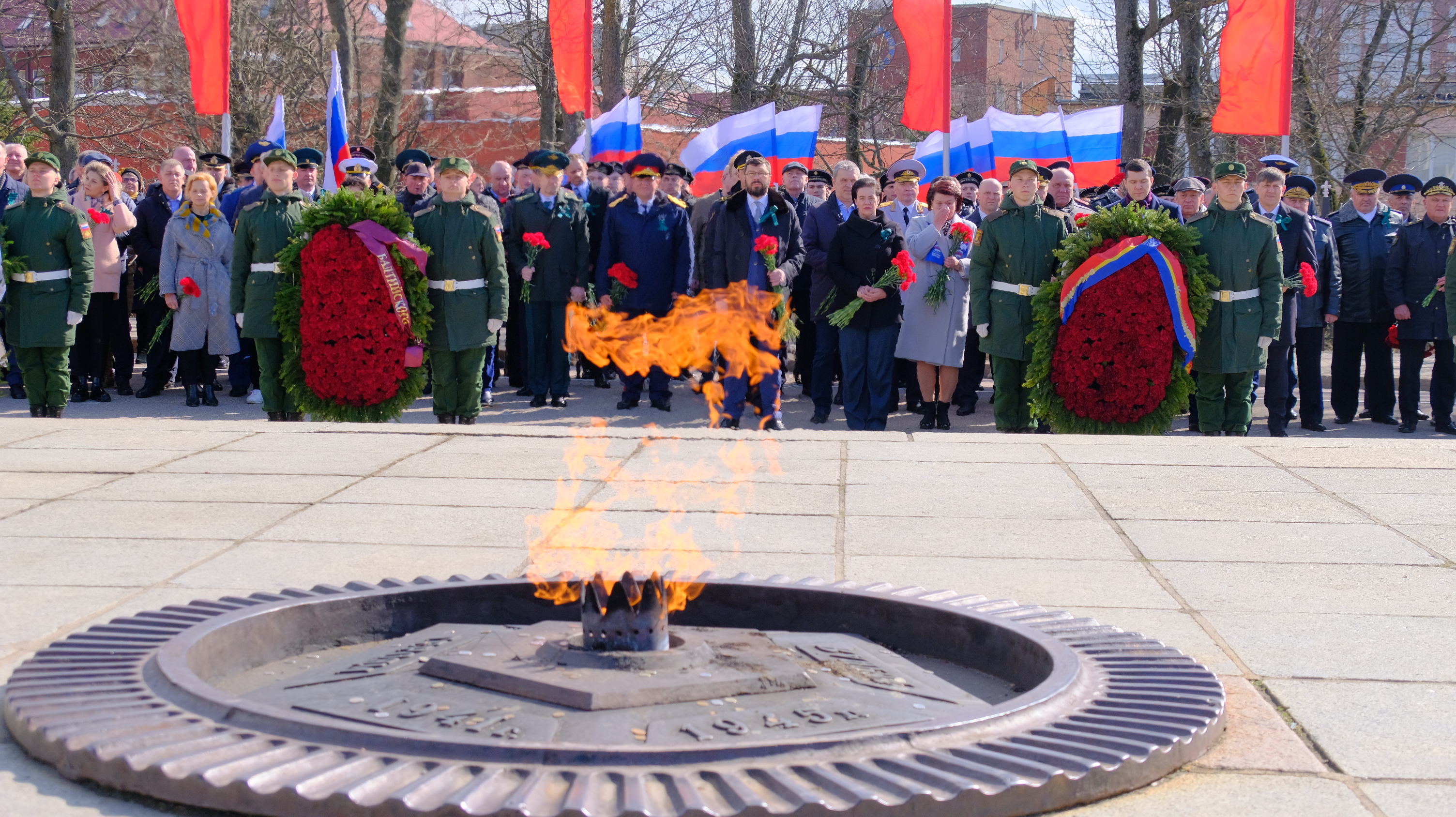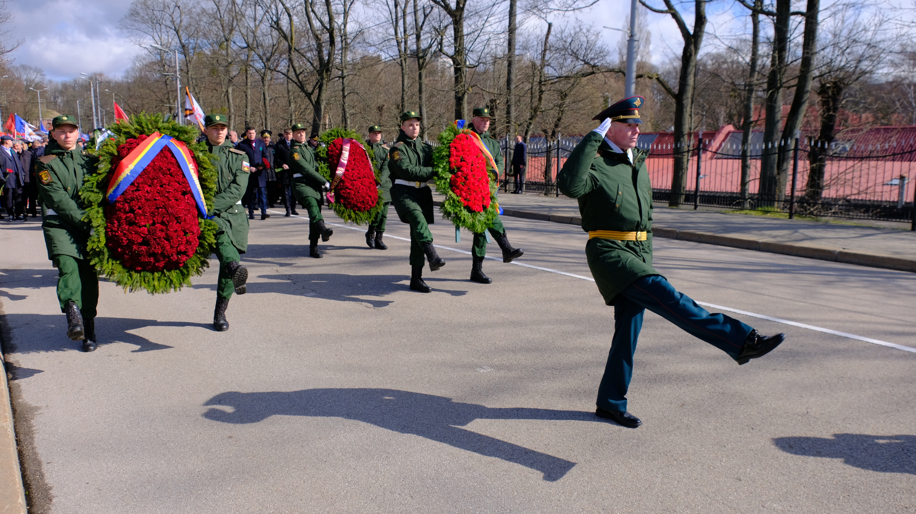 Сегодня, 9 апреля, в Калининграде состоялась торжественная церемония возложения венков и цветов к памятнику 1200 воинам 11-й гвардейской армии, погибшим при штурме Кёнигсберга.