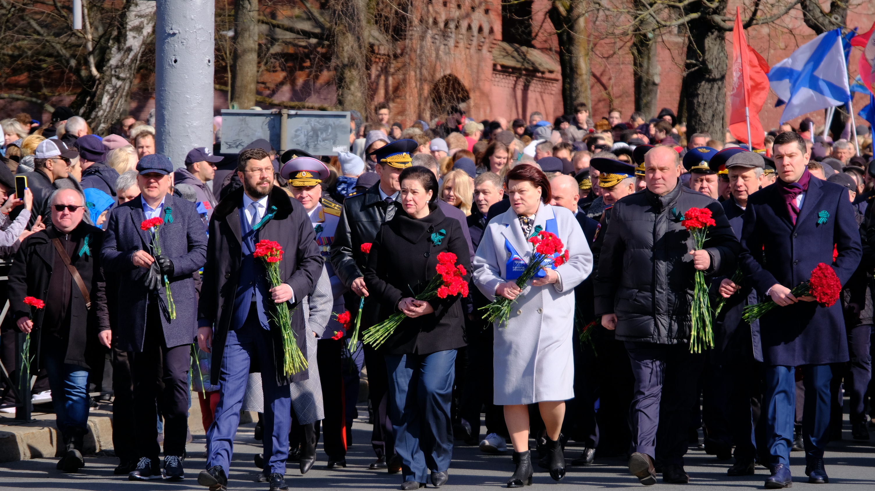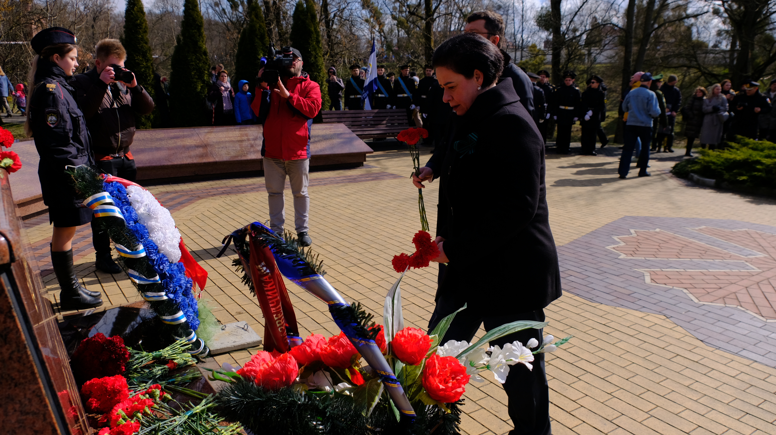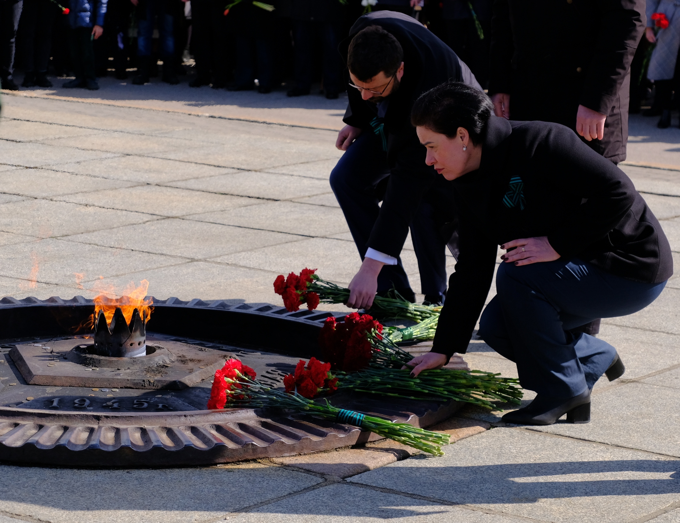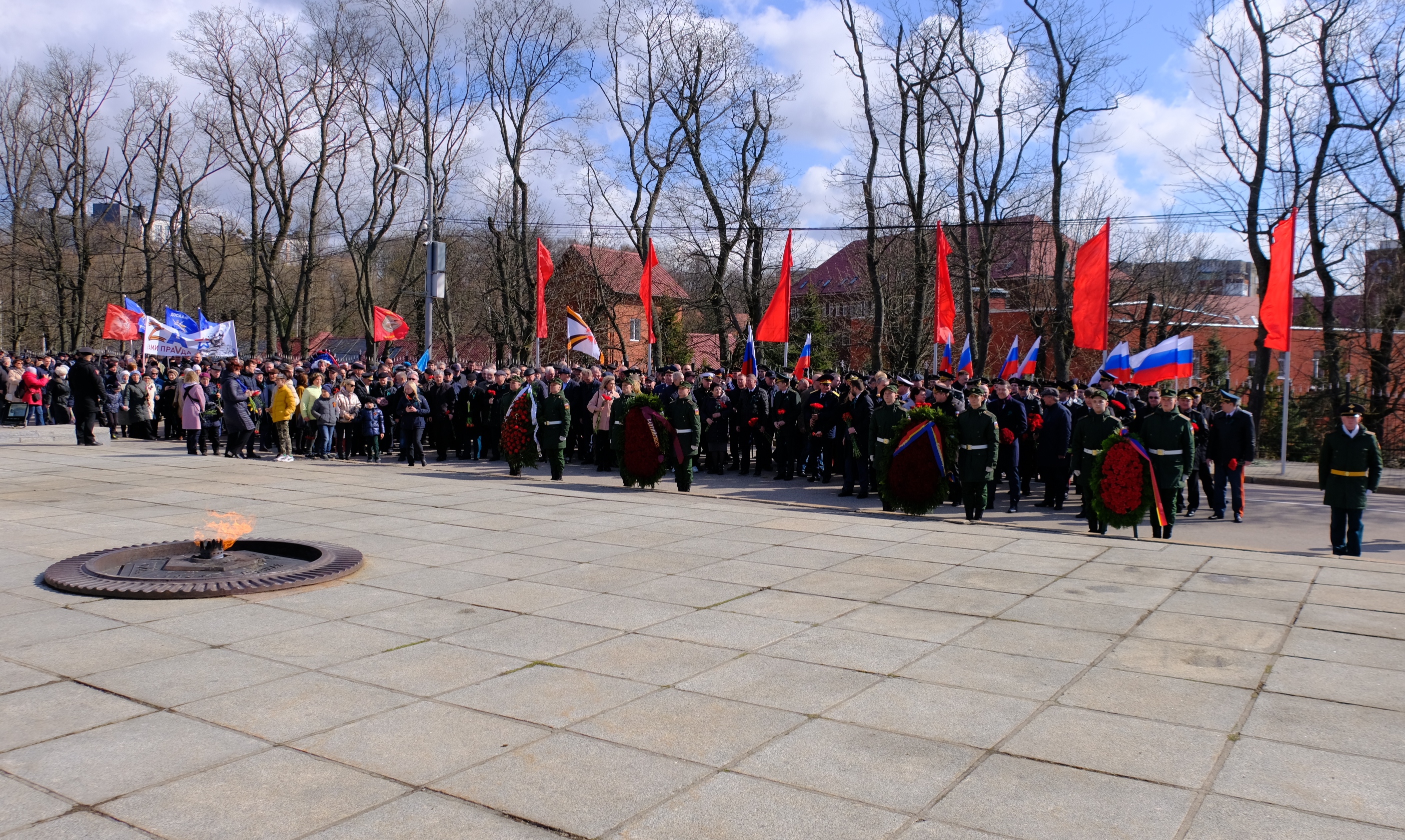 В церемонии возложения венков и цветов к мемориалу приняли участие губернатор Калининградской области Антон Алиханов, глава администрации Калининграда Елена Дятлова, глава областного центра Евгений Любивый, представители командования Балтийским флотом, ветераны Великой Отечественной войны, общественные организации, молодёжь.