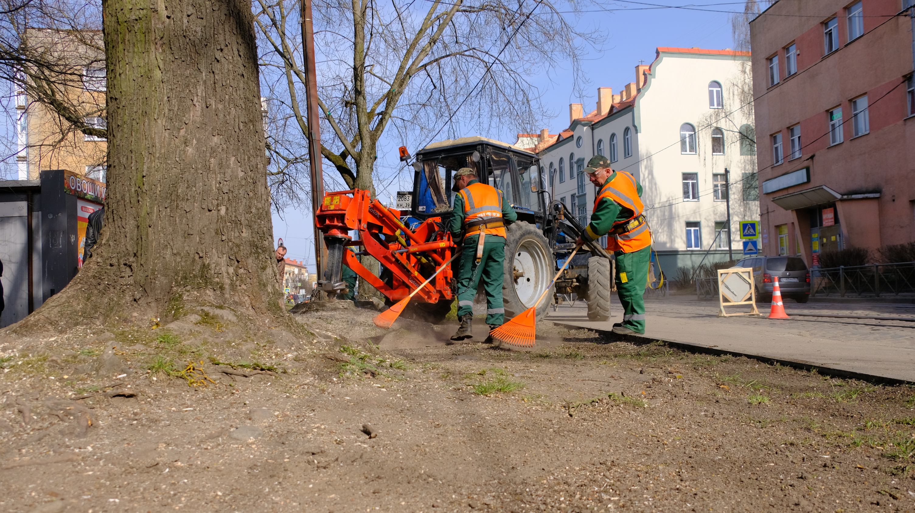 В работе «Чистота» задействовала новую технику и оборудование. В текущем году муниципальное предприятие приобрело на 60 миллионов рублей 12 единиц транспорта и 15 единиц оборудования. Это комбинированные дорожные машины, навесное оборудование, тракторы, вышки, цистерны и другое. «Новые принципы работы предприятия предполагают комплексный подход. Сегодня учреждение следит не только за чистотой города, но и за зелеными насаждениями. Все деревья, которые высаживаются в Калининграде, заносятся в реестр и закрепляются за «Чистотой». Молодые насаждения обязательно надо поливать, у старых нужно обрезать ветви», - рассказала Елена Дятлова. Очень много работы у предприятия было прошедшей зимой, после штормовых ветров. По словам главы администрации, всего во время ураганов, зимой и весной, упали более 100 деревьев. По закону их не требуется компенсировать, но принято решение, вместо упавших деревьев уже осенью высадить новые. Чтобы выпилить пни на Багратиона задействовали новое навесное оборудование, оно позволяет освободить место для высадки молодых деревьев. Ранее, чаще всего, после вырубки пни оставались стоять долгое время. В эти дни большую работу «Чистота» проводит и на въезде в город, вдоль Балтийского шоссе. Там приводят в порядок лесополосу, убирают поваленные деревья и мелкую поросль.