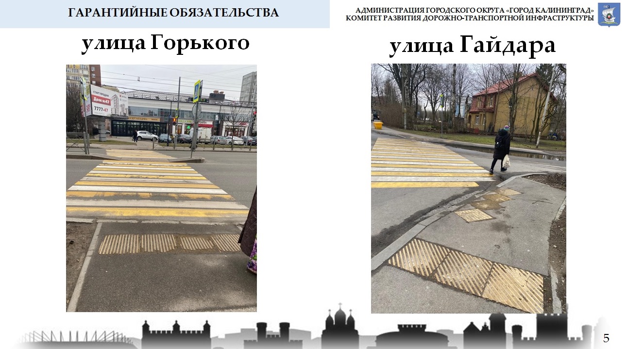 По итогам проведенного комиссионного обследования требуется замена плитки на 74 улицах (3339 шт.). Под гарантийные обязательства попадают разрушения плитки на 28 улицах или 1144 штук. Тактильная плитка, разрушенная на объектах после истечения срока гарантии или не попадающая под гарантийные случаи, будет заменена за счет текущего содержания улично-дорожной сети до 1 июня 2022 года.