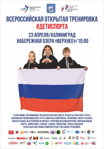 23 апреля 2022 года в 45 регионах нашей страны пройдет Всероссийская открытая тренировка «Дети спорта». В Калининграде мероприятие пройдет в формате спортивного праздника с 10:00 до 12:00 часов на набережной Верхнего озера (ориентир скейт-велопарк).
