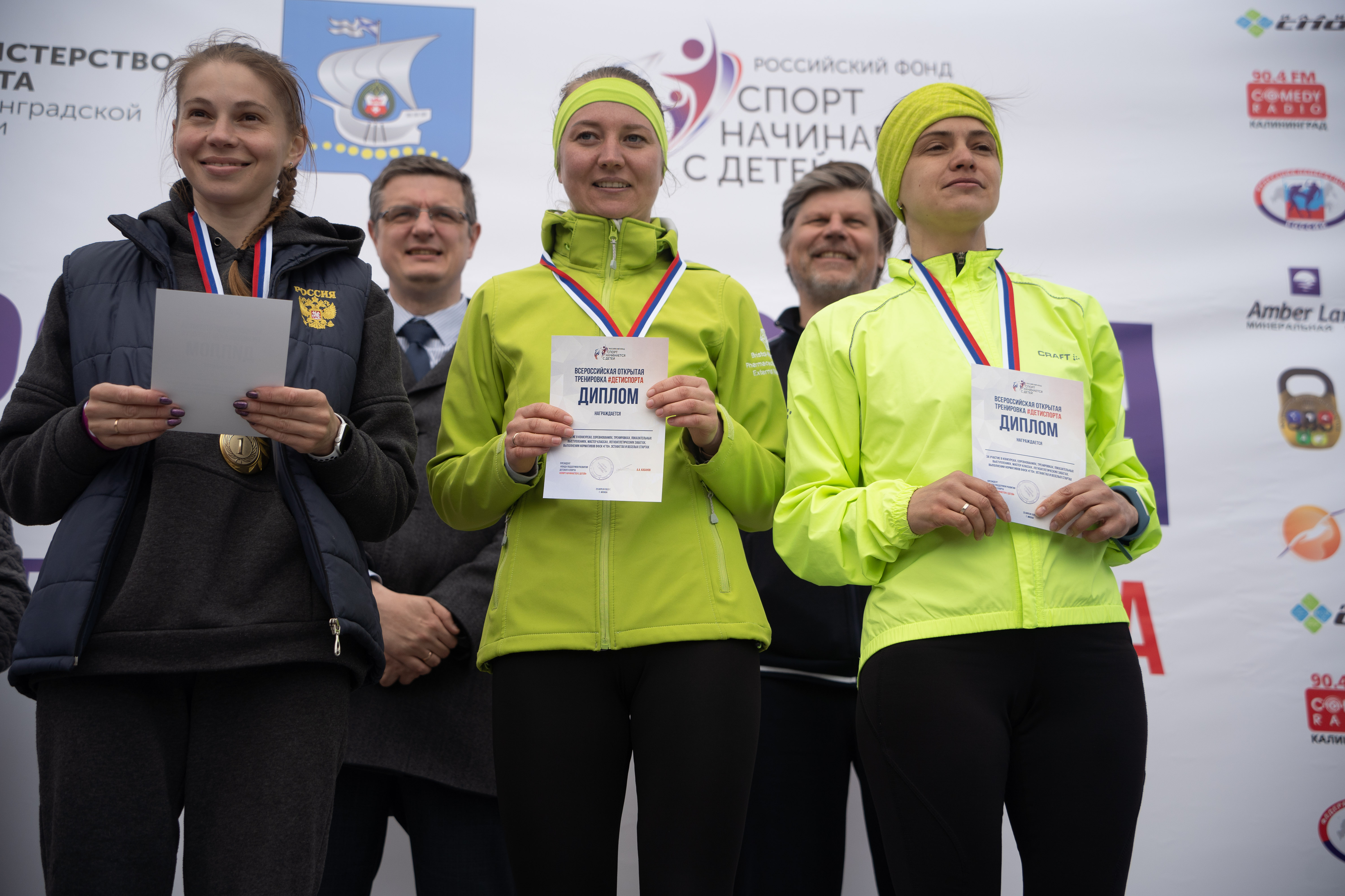 Торжественной частью праздника стала церемония награждения команд школьников, ставших победителями в конкурсе «Пятиминутка», гимназии № 40, лицеев 17, 35 и спортсменов, занявших 1, 2, 3 места в легкоатлетических забегах в возрастных группах среди мальчиков и девочек 7-8 лет, 9-10 лет, 11-12 лет, юношей и девушек 13-14 лет, 15-16 лет, 17-18 лет, мужчин и женщин с вручением дипломов, медалей, кубков и подарков. В завершении состоялся розыгрыш счастливых номеров участников Всероссийской тренировки «Дети Спорта». Среди разыгранных призов: велосипед, абонементы в фитнес-клубы Калининграда, сертификаты на приобретение спортивных товаров и одежды в сети магазинов «Планета спорт» и другие.