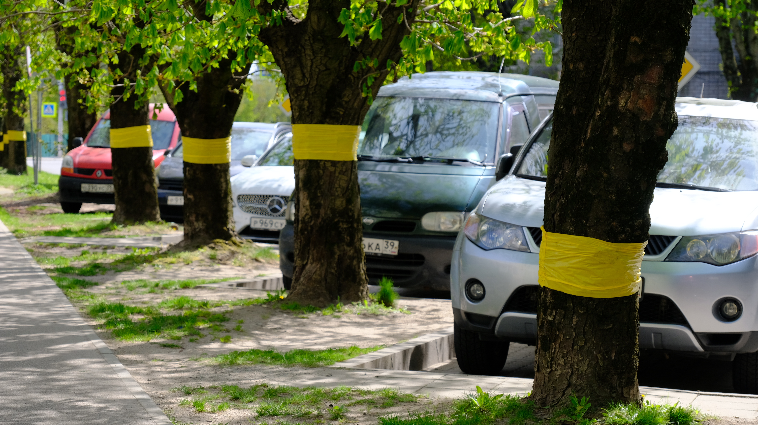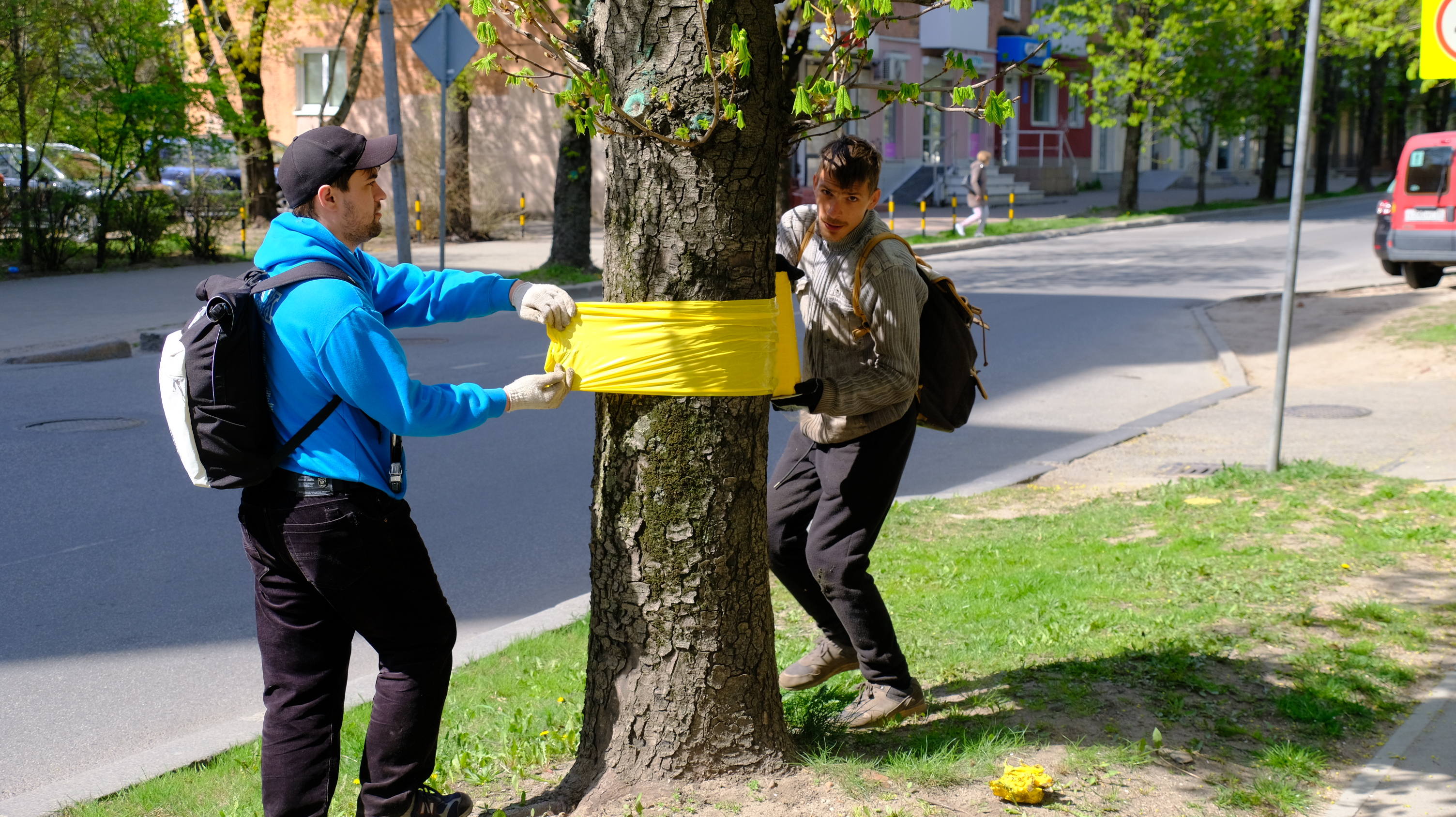 Сегодня же стартовал первый этап в борьбе с охридским минёром. В Калининграде начали опоясывать деревья липкой лентой - ловчими поясами. Пояса с феромонами изготовлены в ФГБУ «ВНИИКР».