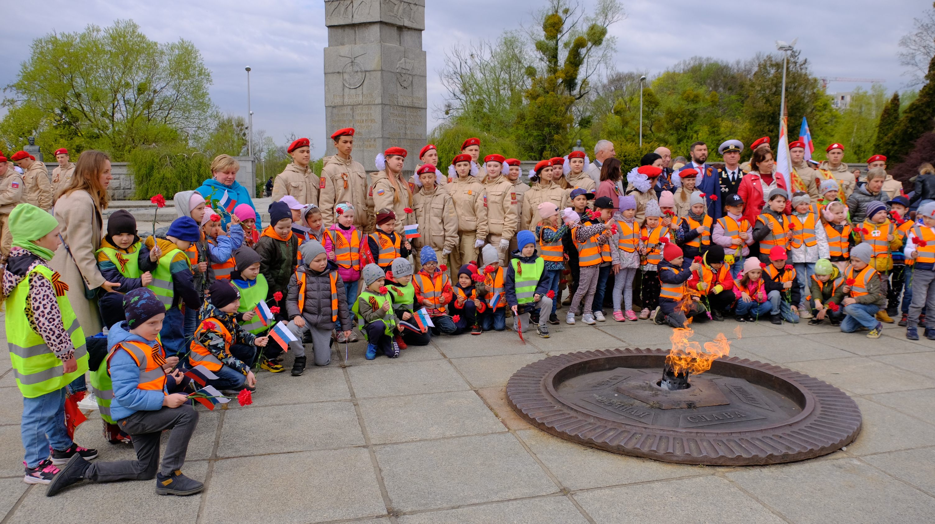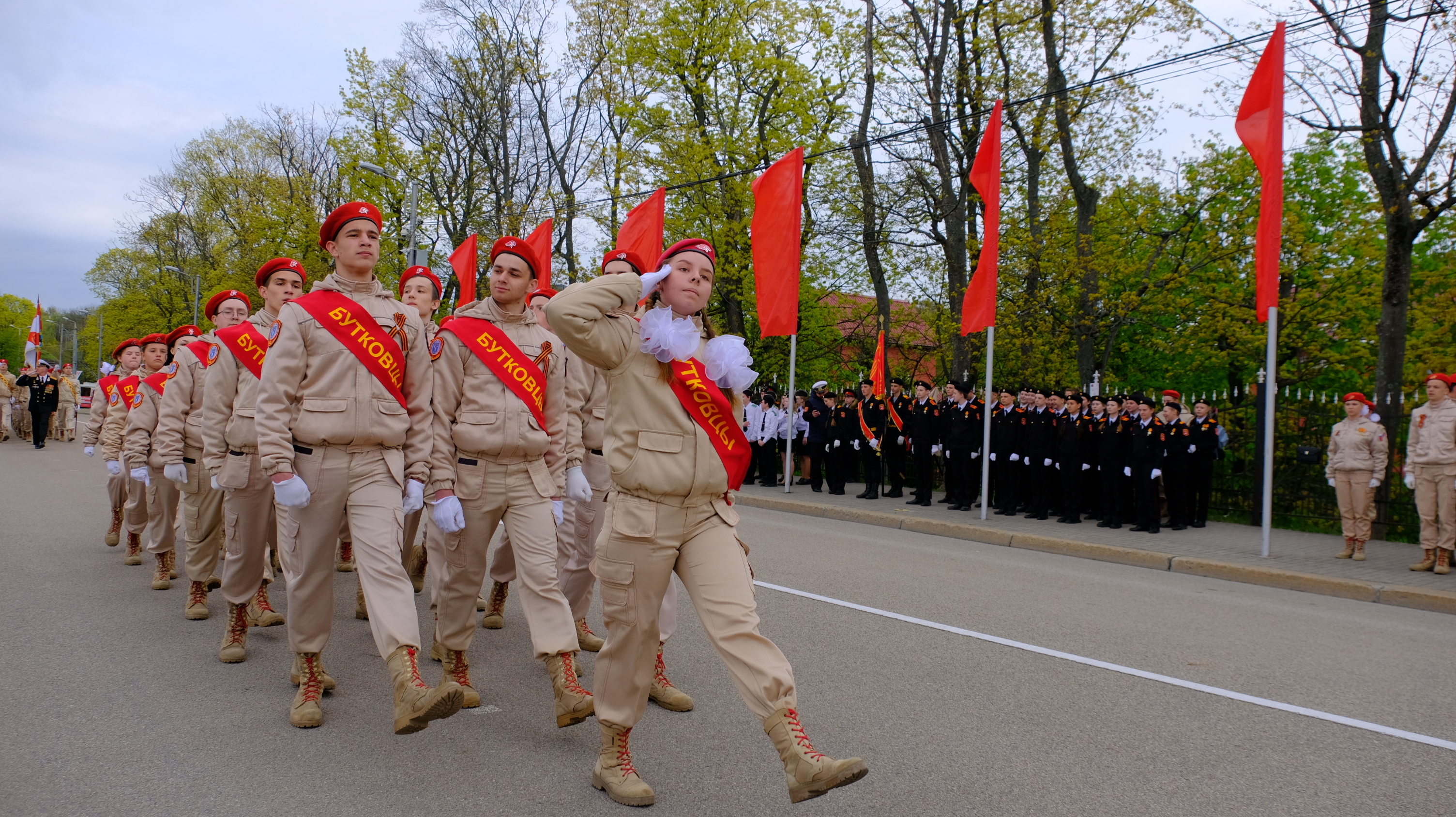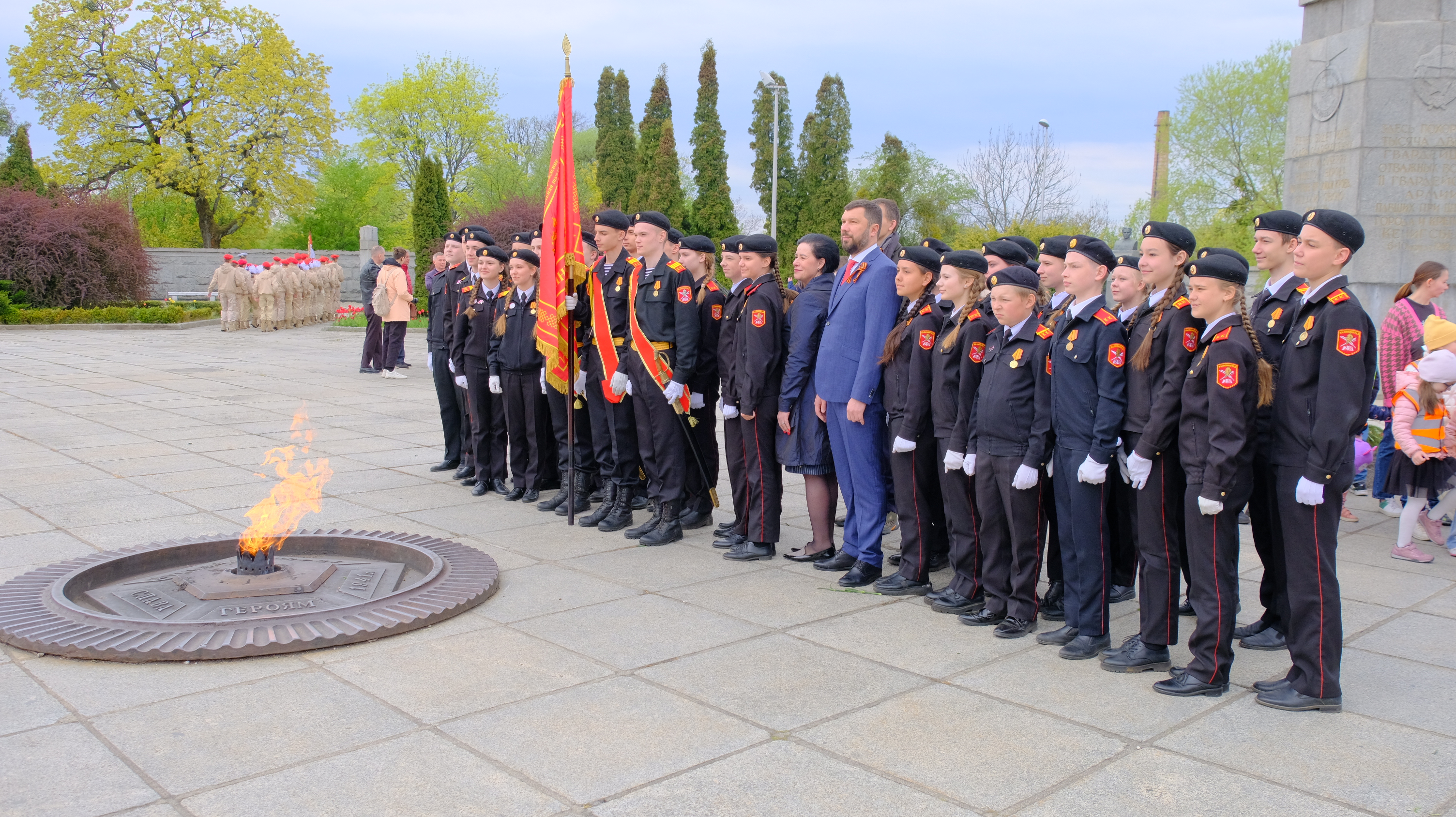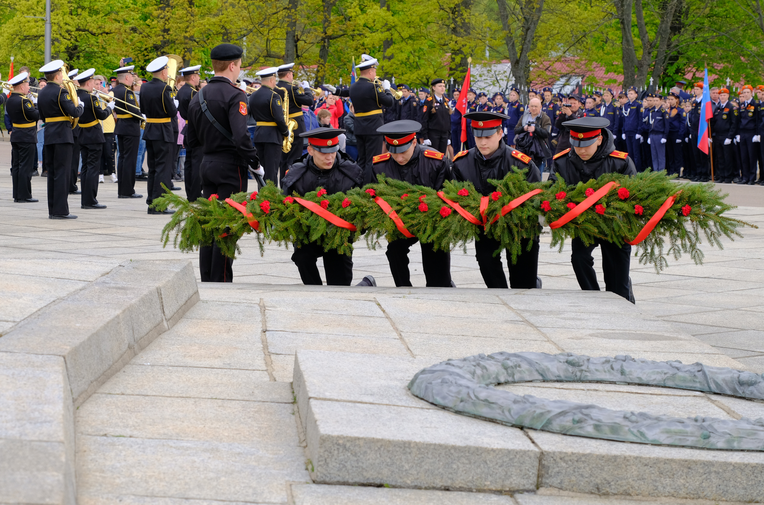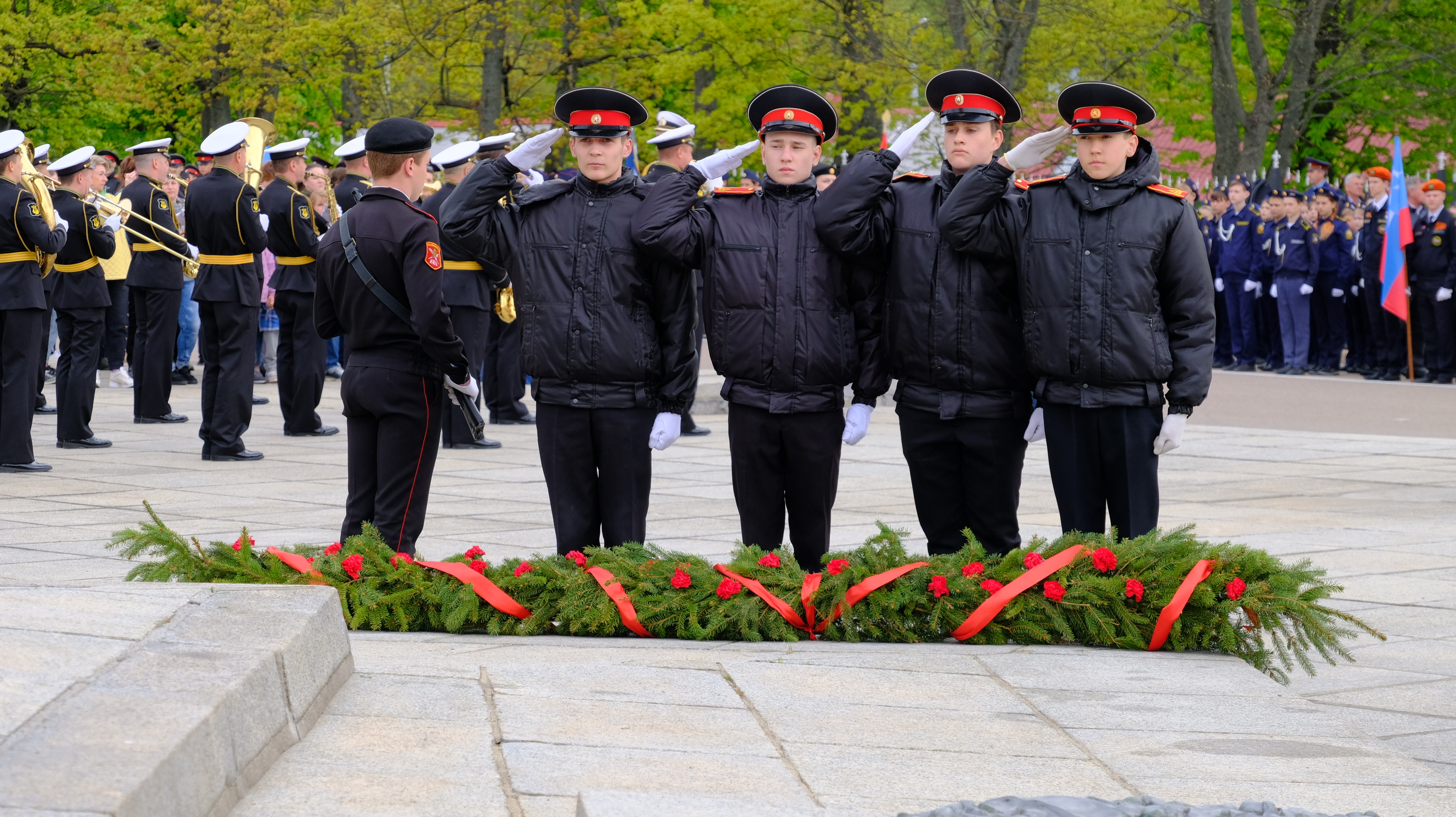 Сегодня, 5 мая 2022 года, у мемориала 1200 воинам-гвардейцам под оркестр Балтийского высшего военно-морского училища имени Ф.Ф. Ушакова прошли парадом учащиеся кадетских классов, юнармейских отрядов, военно-патриотических объединений общеобразовательных учреждений города.