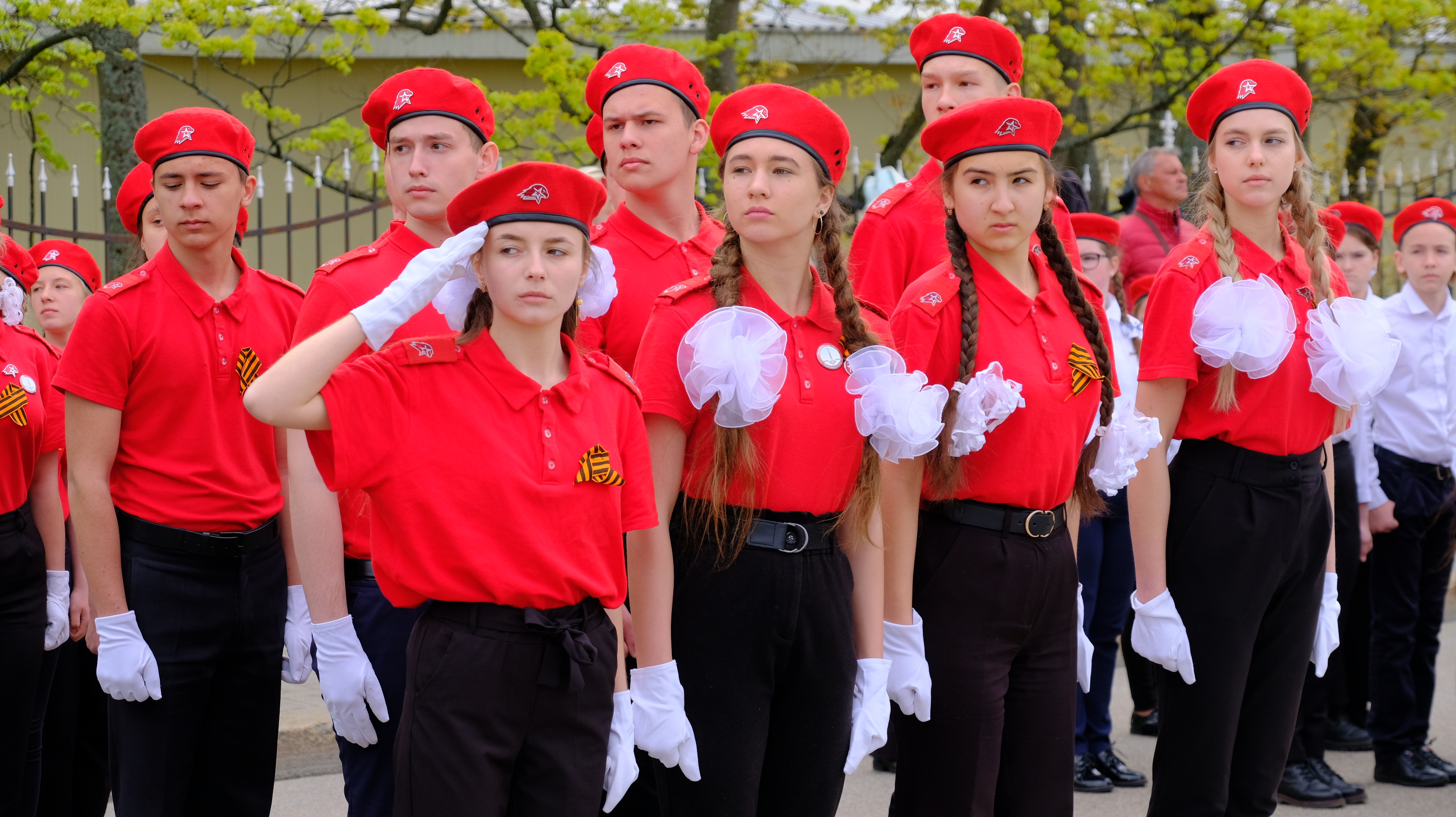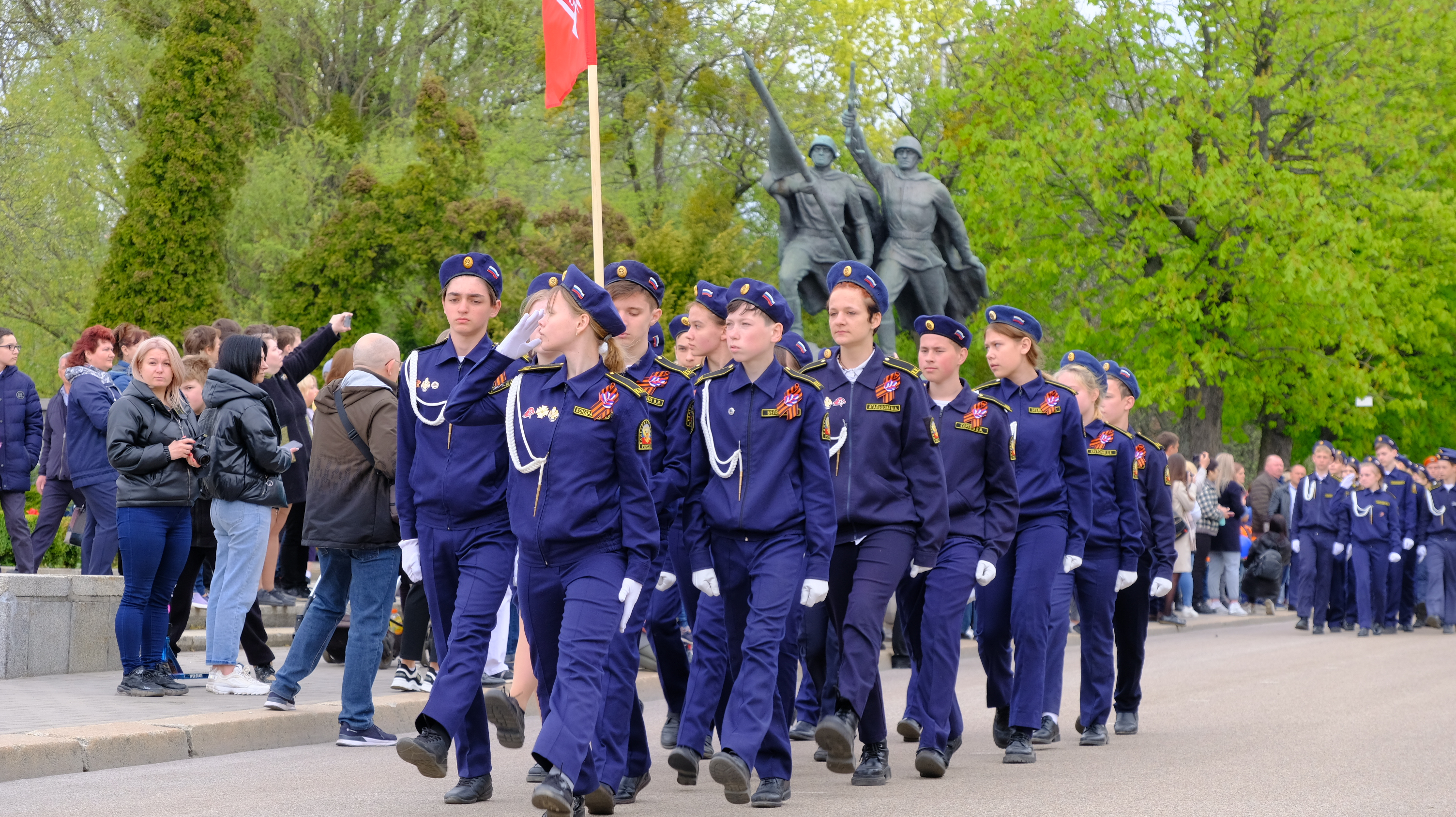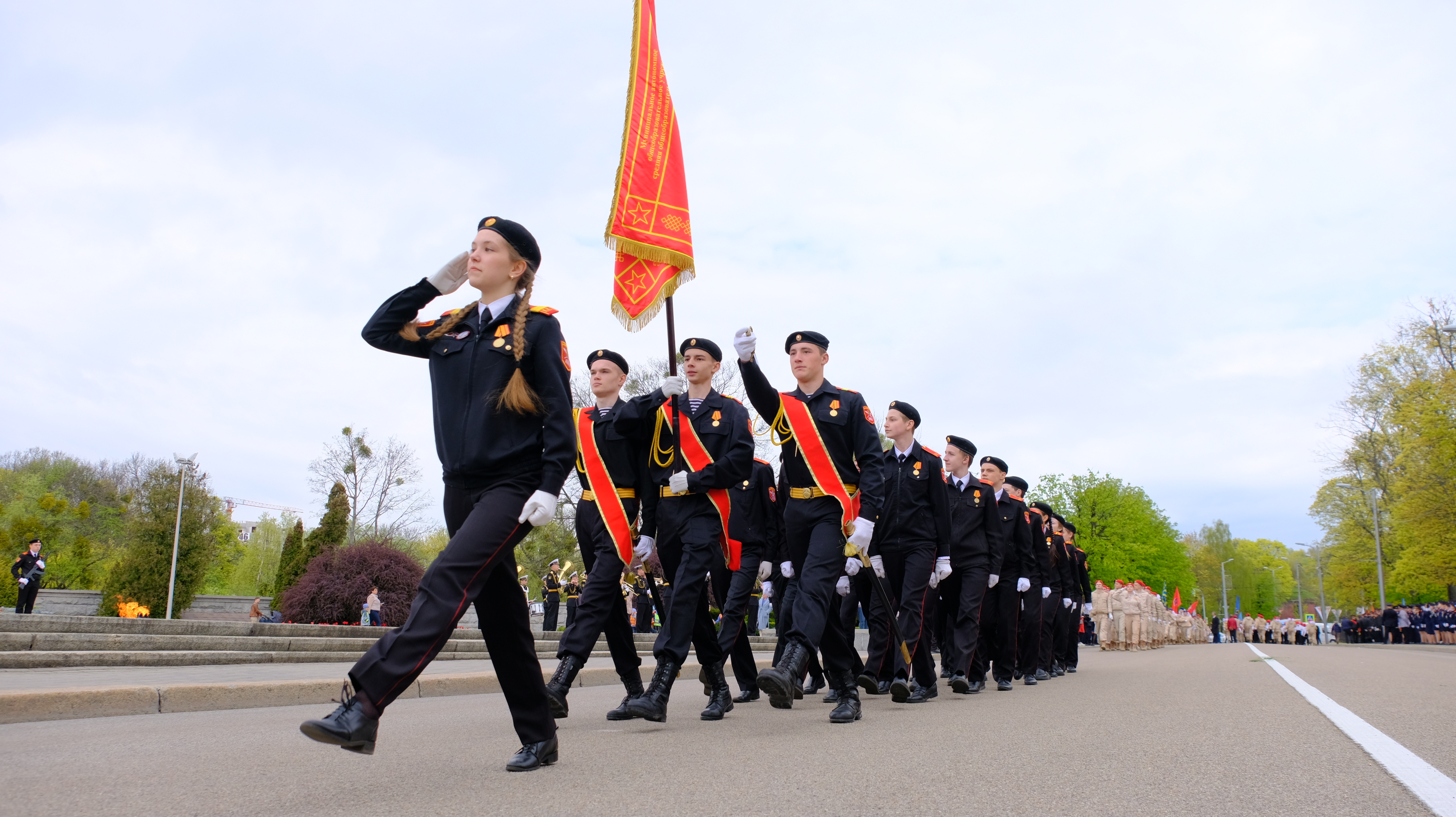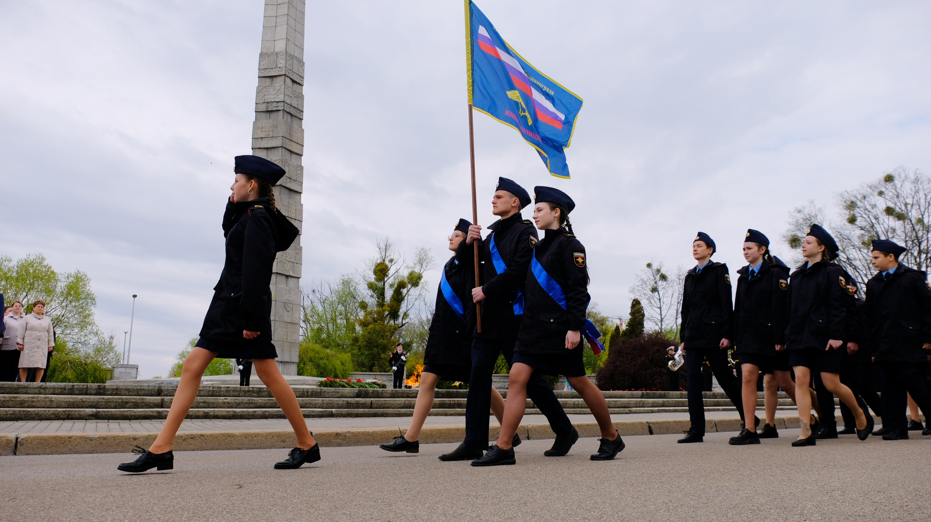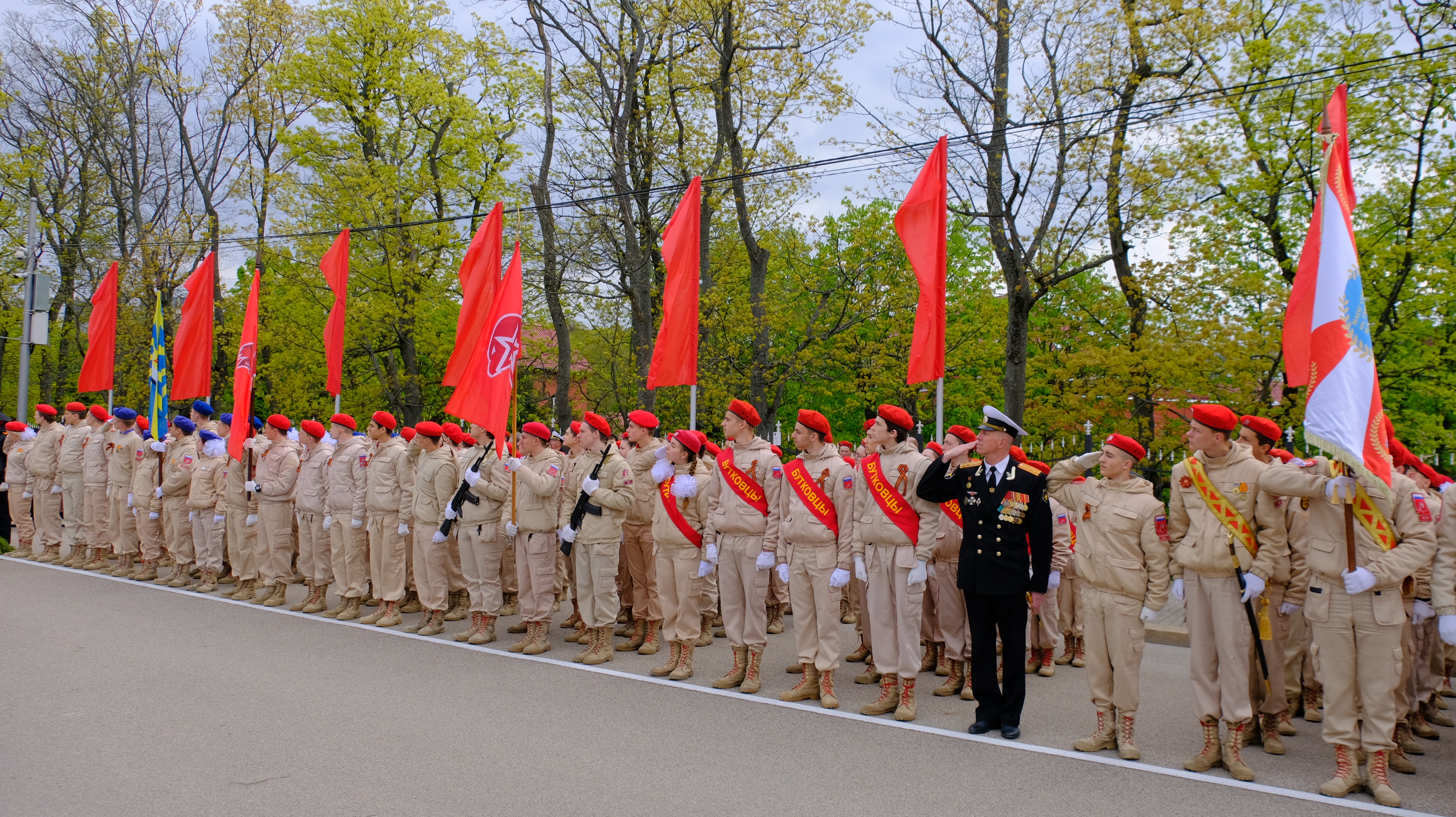 Сегодня, 5 мая 2022 года, у мемориала 1200 воинам-гвардейцам под оркестр Балтийского высшего военно-морского училища имени Ф.Ф. Ушакова прошли парадом учащиеся кадетских классов, юнармейских отрядов, военно-патриотических объединений общеобразовательных учреждений города.