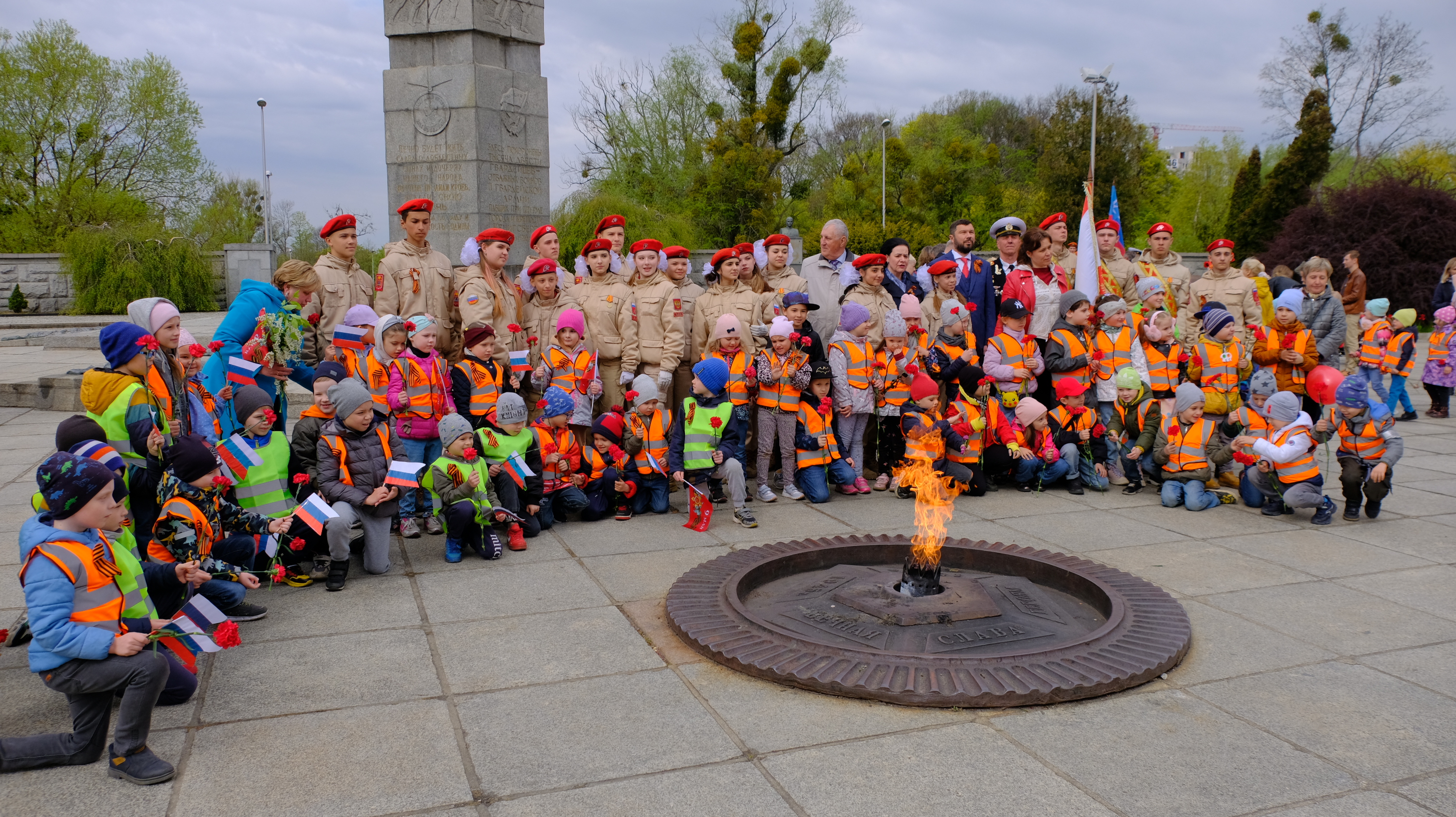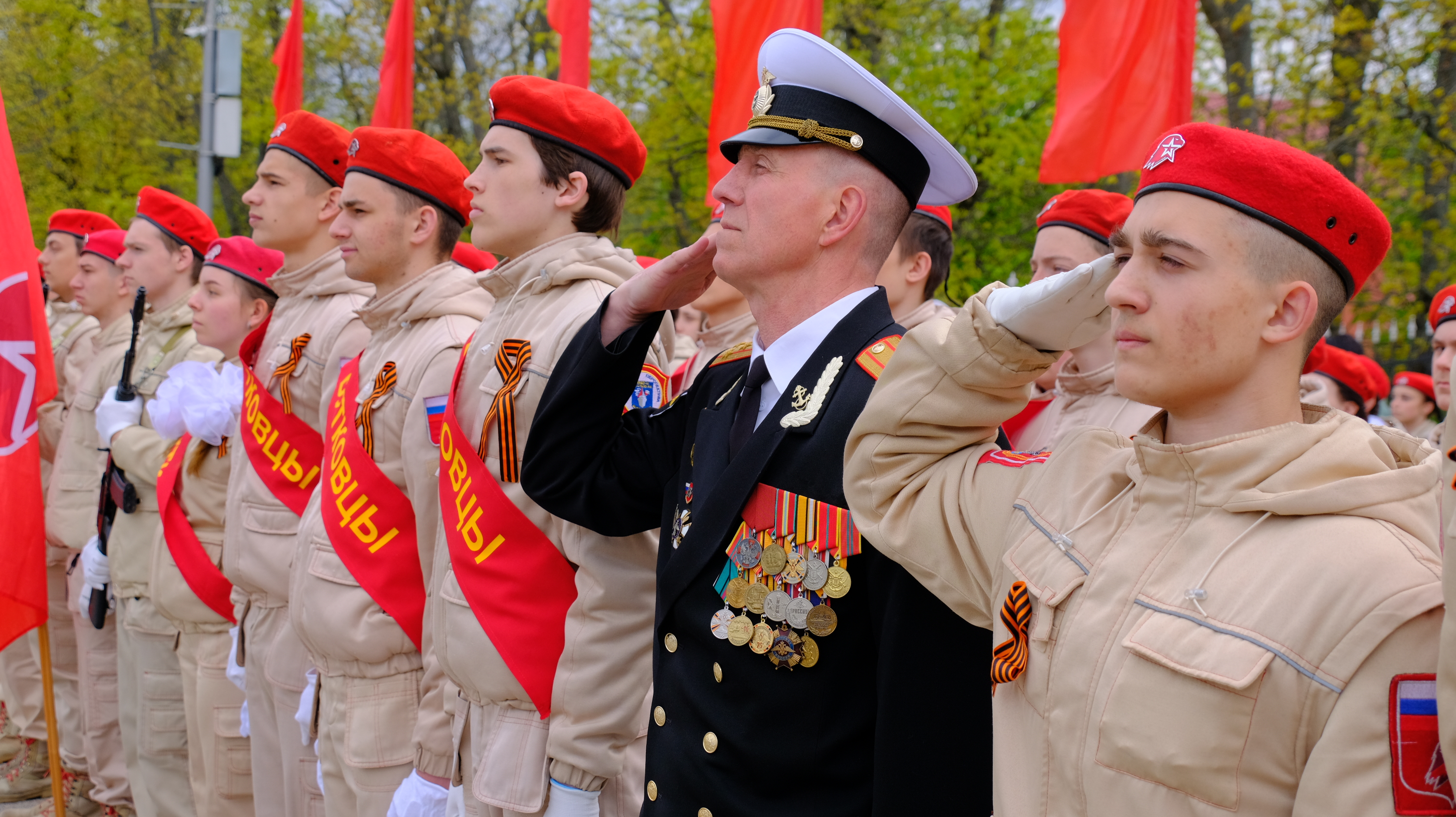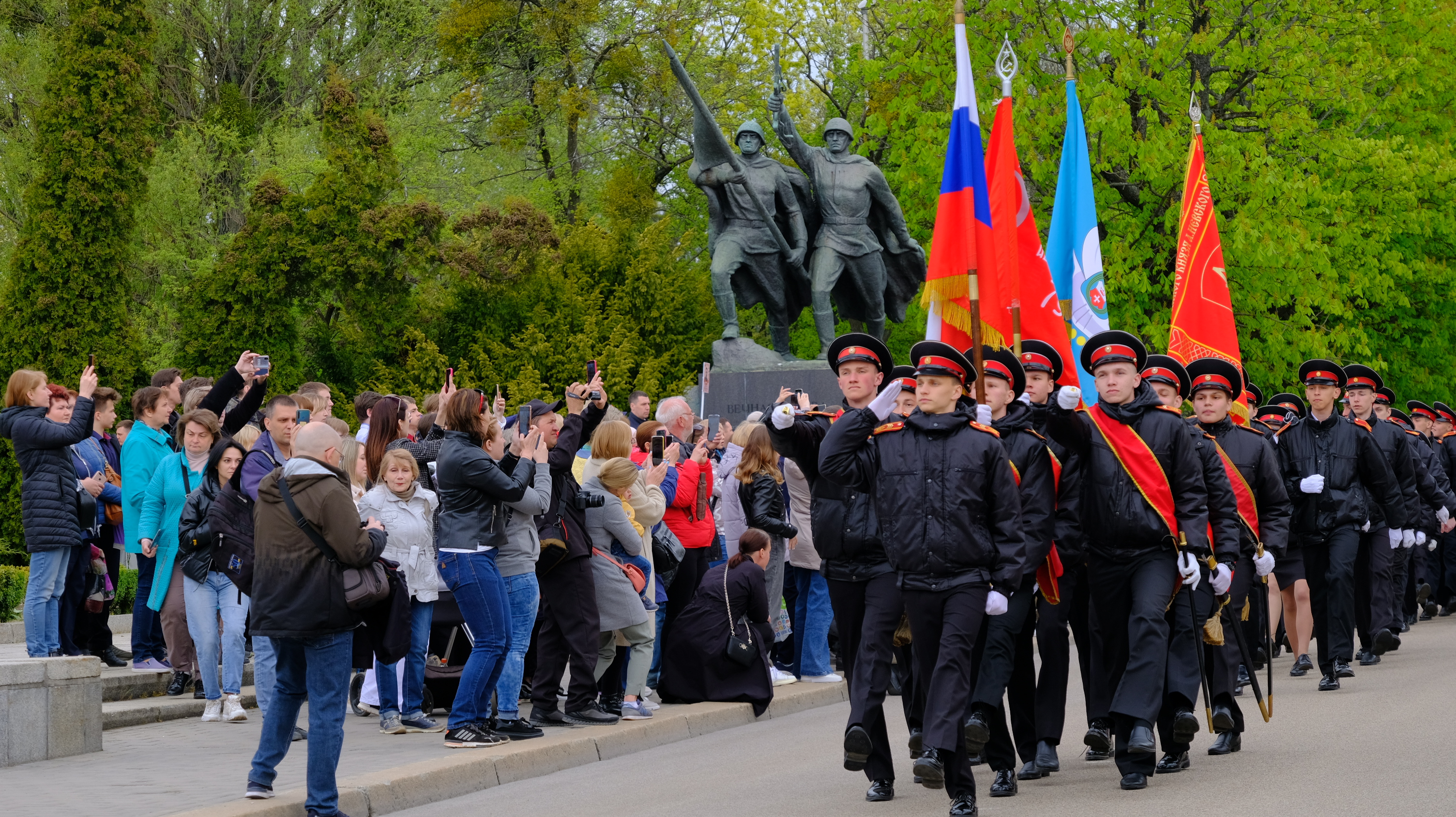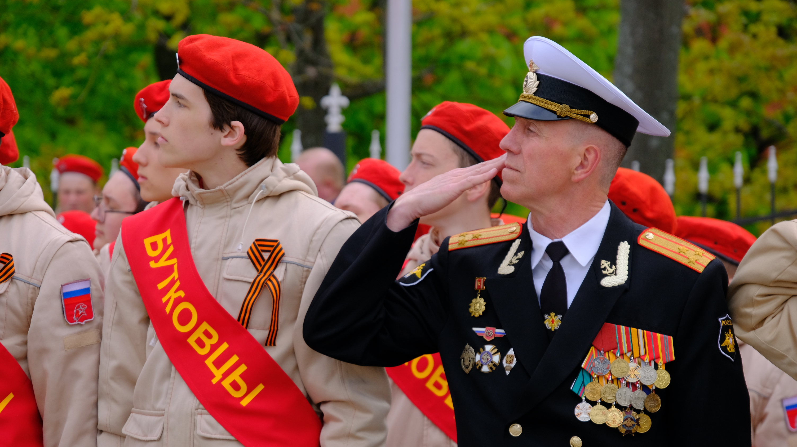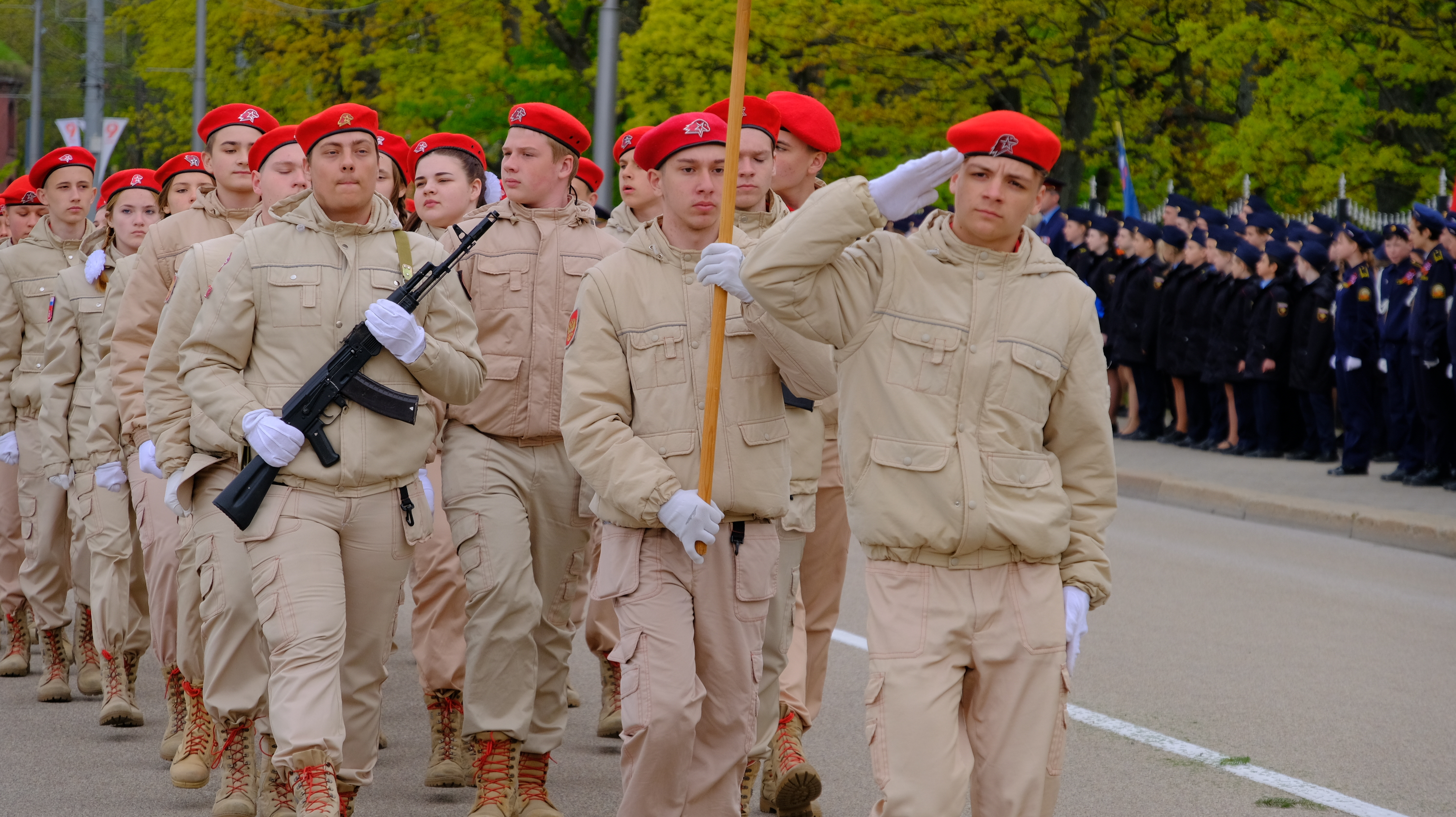 Сегодня, 5 мая 2022 года, у мемориала 1200 воинам-гвардейцам под оркестр Балтийского высшего военно-морского училища имени Ф.Ф. Ушакова прошли парадом учащиеся кадетских классов, юнармейских отрядов, военно-патриотических объединений общеобразовательных учреждений города.