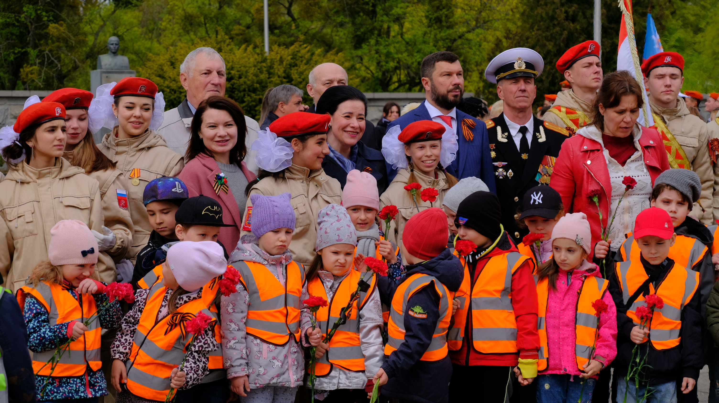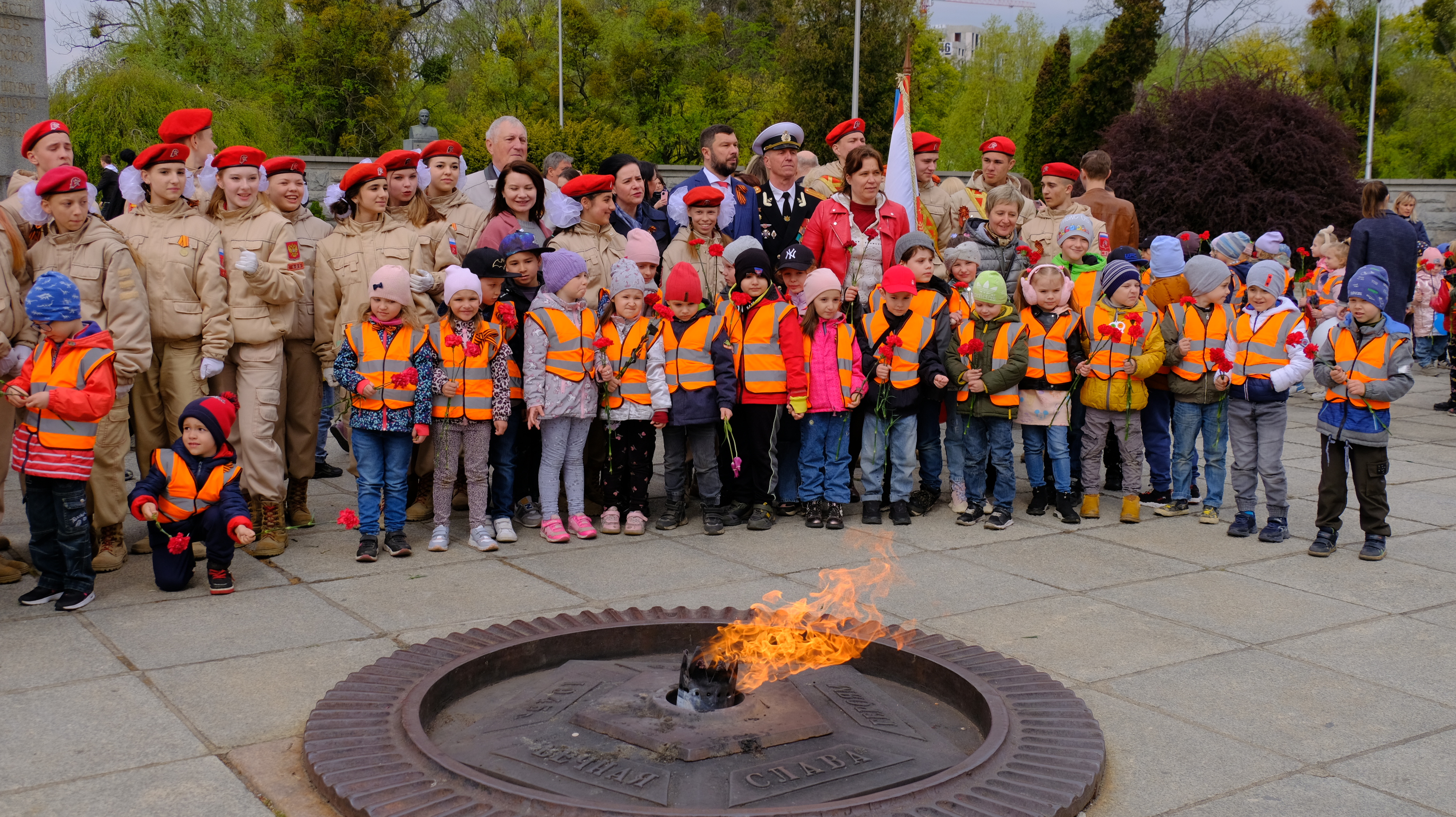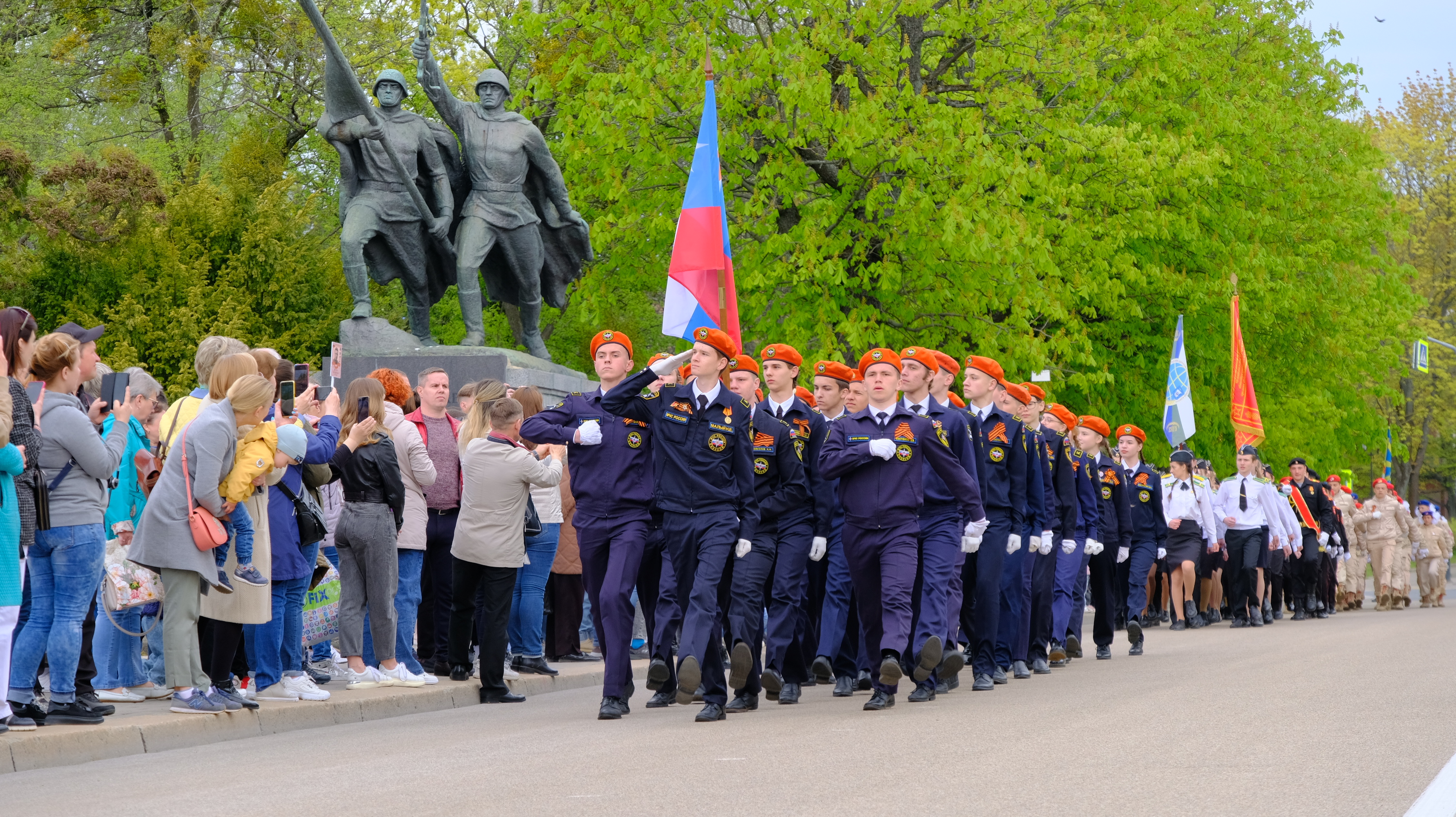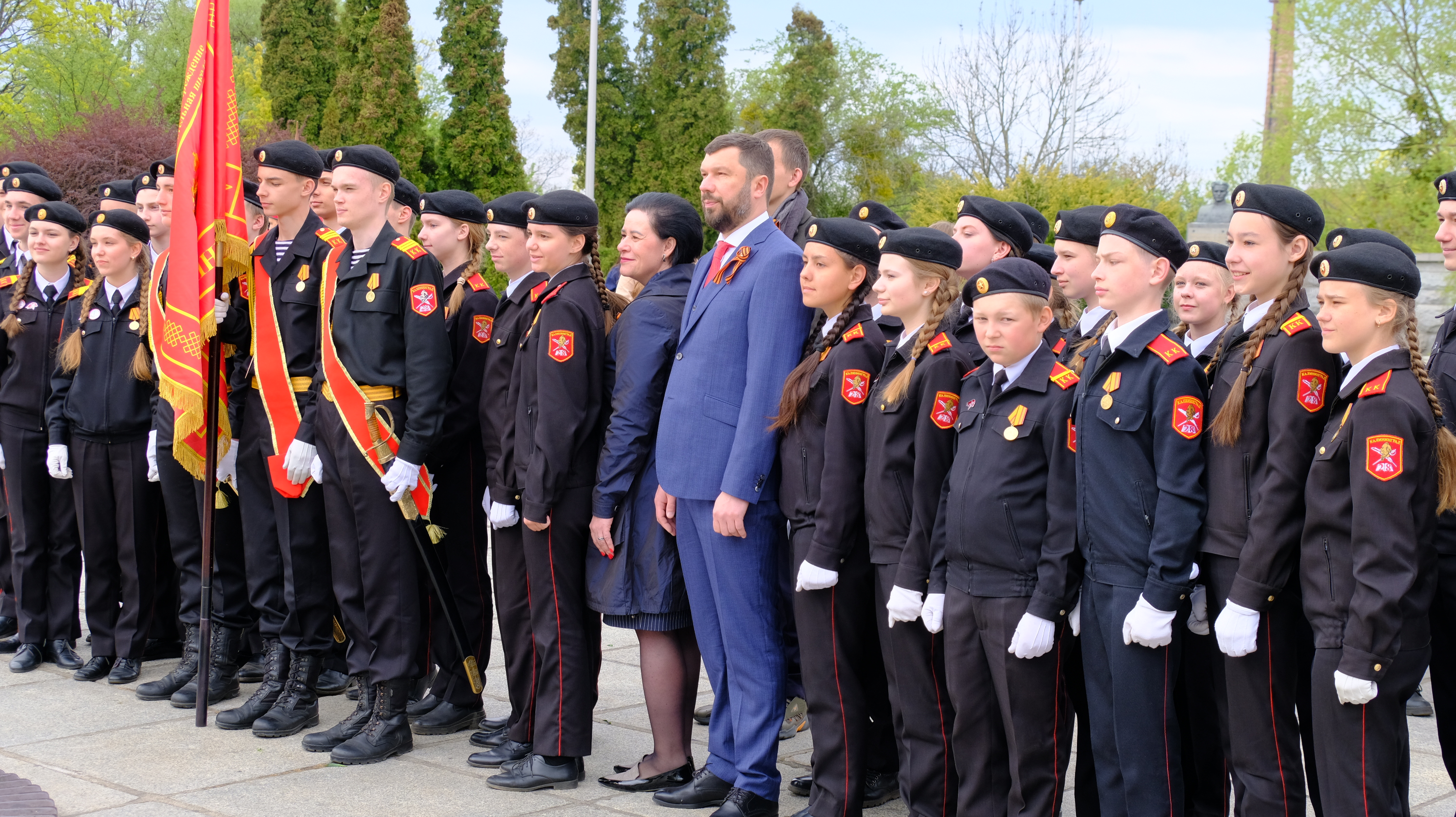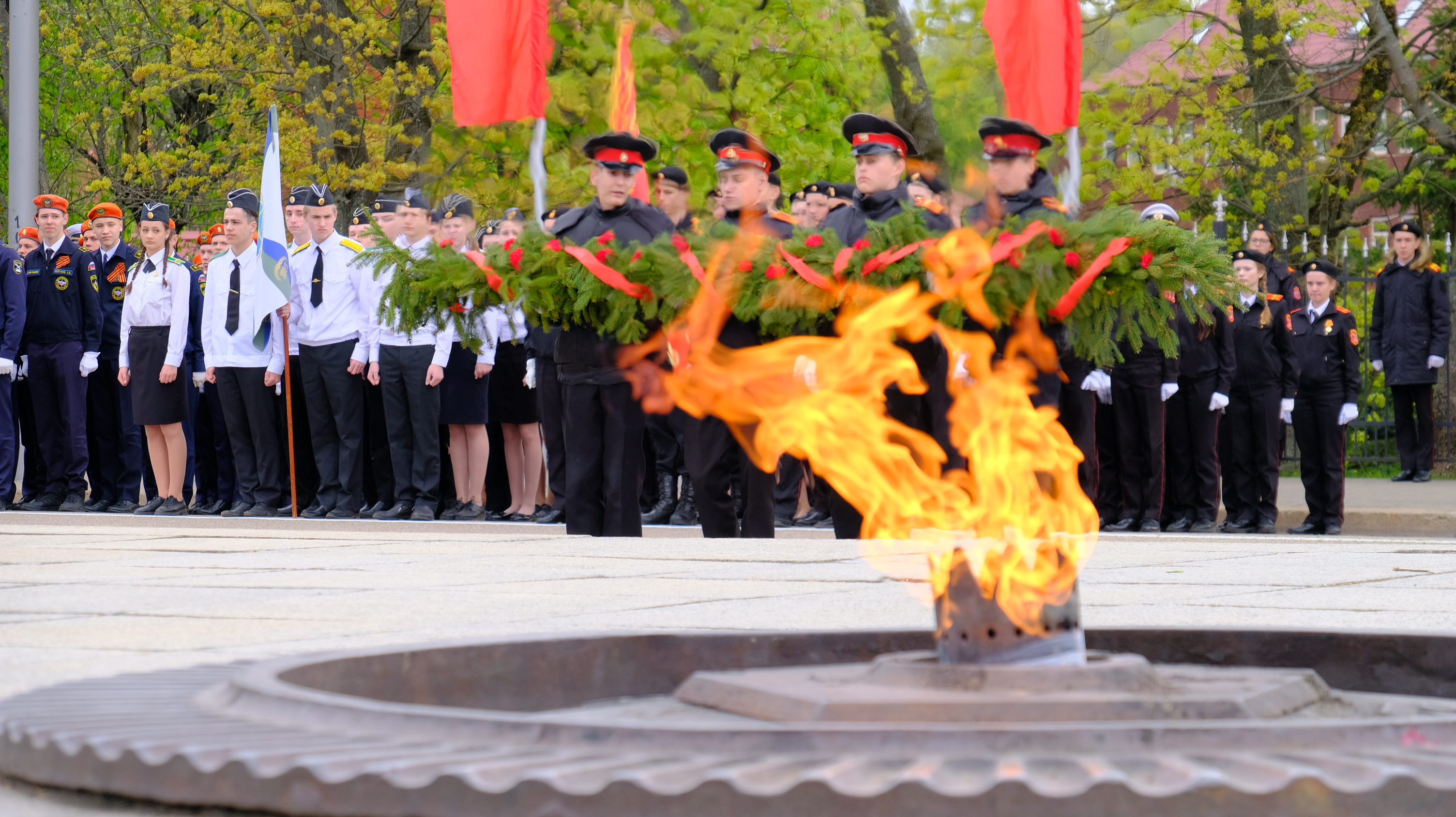 Сегодня, 5 мая 2022 года, у мемориала 1200 воинам-гвардейцам под оркестр Балтийского высшего военно-морского училища имени Ф.Ф. Ушакова прошли парадом учащиеся кадетских классов, юнармейских отрядов, военно-патриотических объединений общеобразовательных учреждений города.