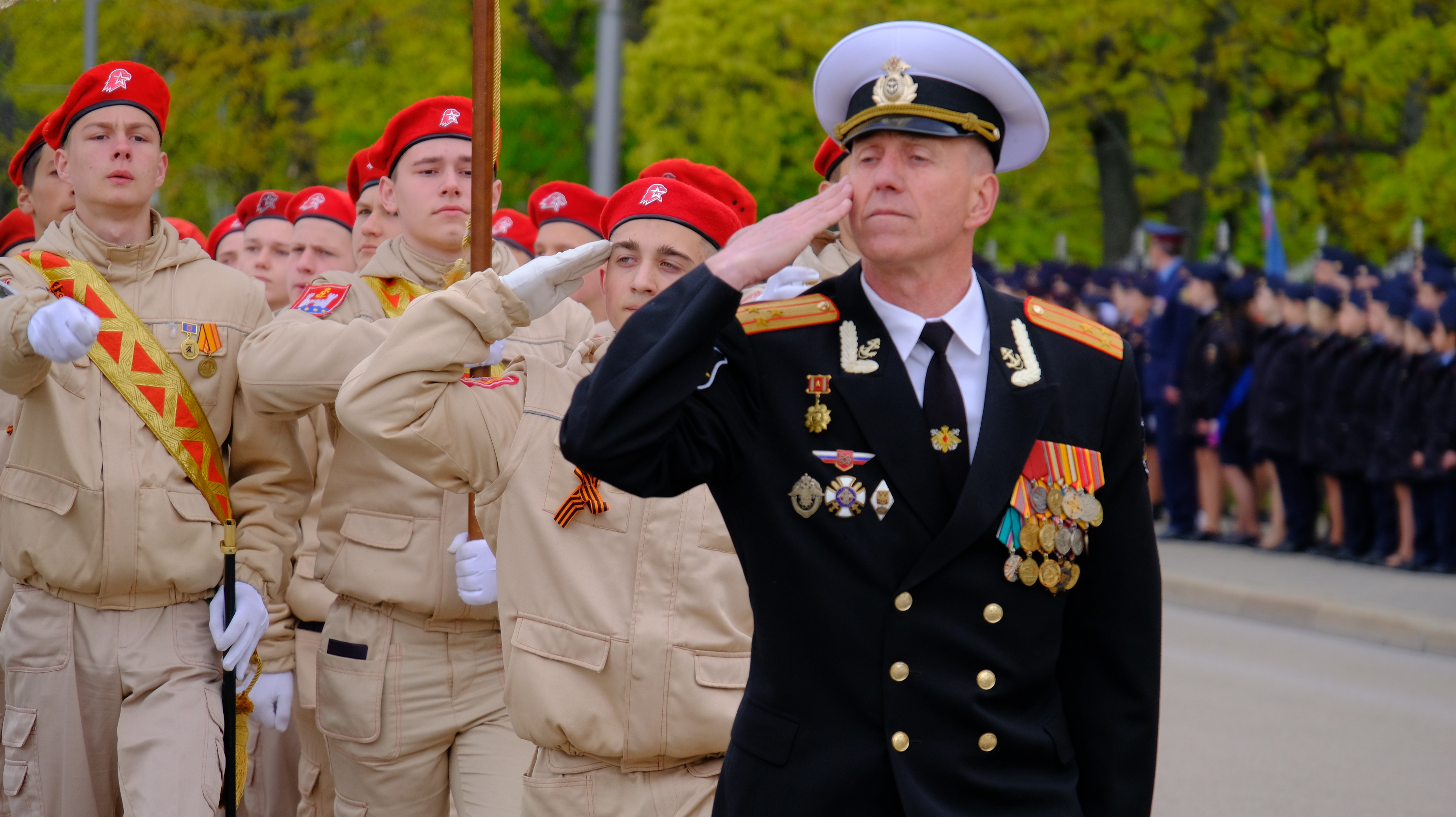 Командовал парадом Петр Яровой, заместитель директора по работе с кадетскими классами школы № 24, полковник запаса, почётный радист Вооруженных сил Российской Федерации, кавалер ордена Александра Невского второй степени.