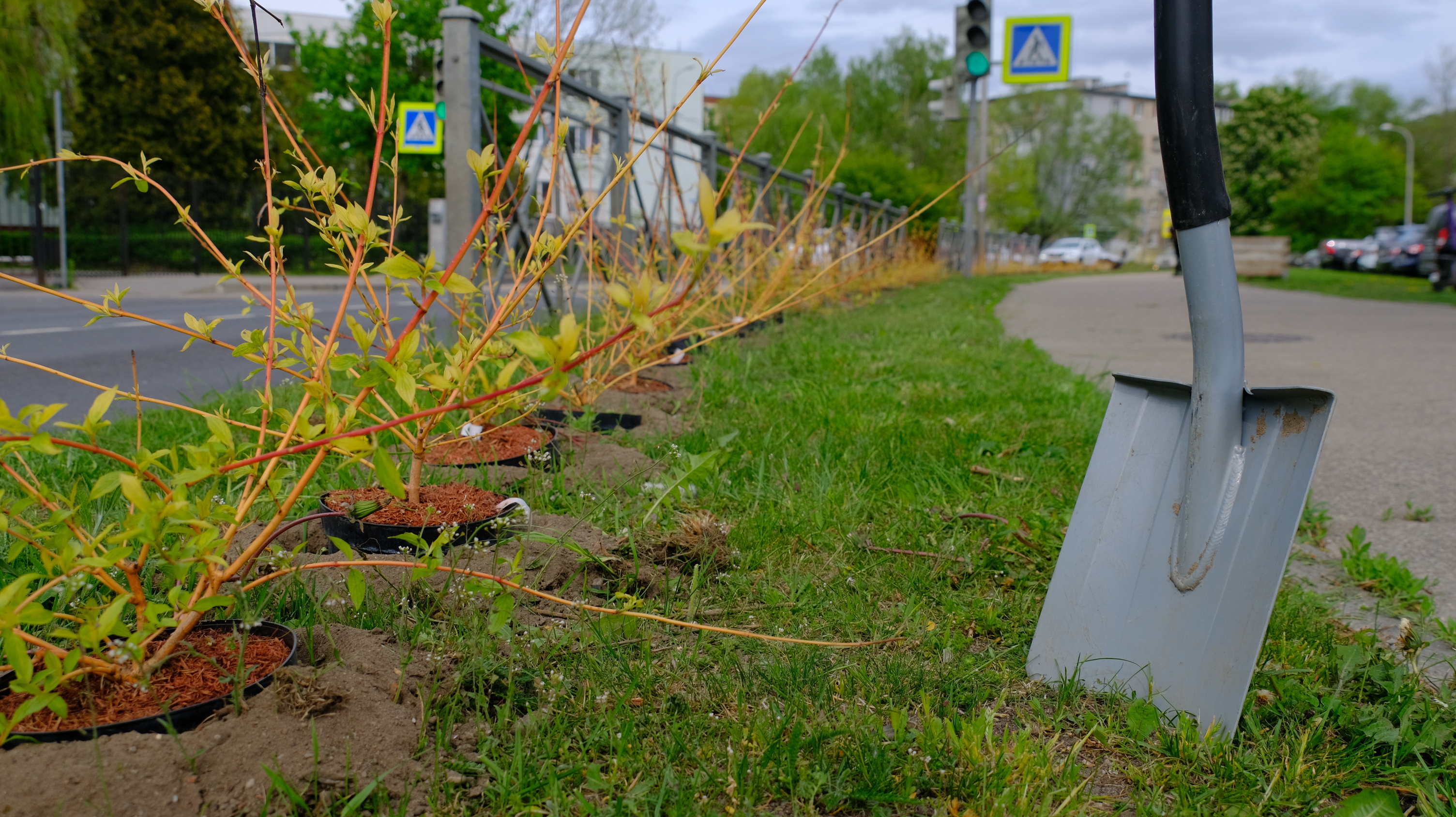 На улице Куйбышева высадили 700 кустов Дёрена белого, осенью, примерно ещё столько же посадят на противоположной нечётной стороне.