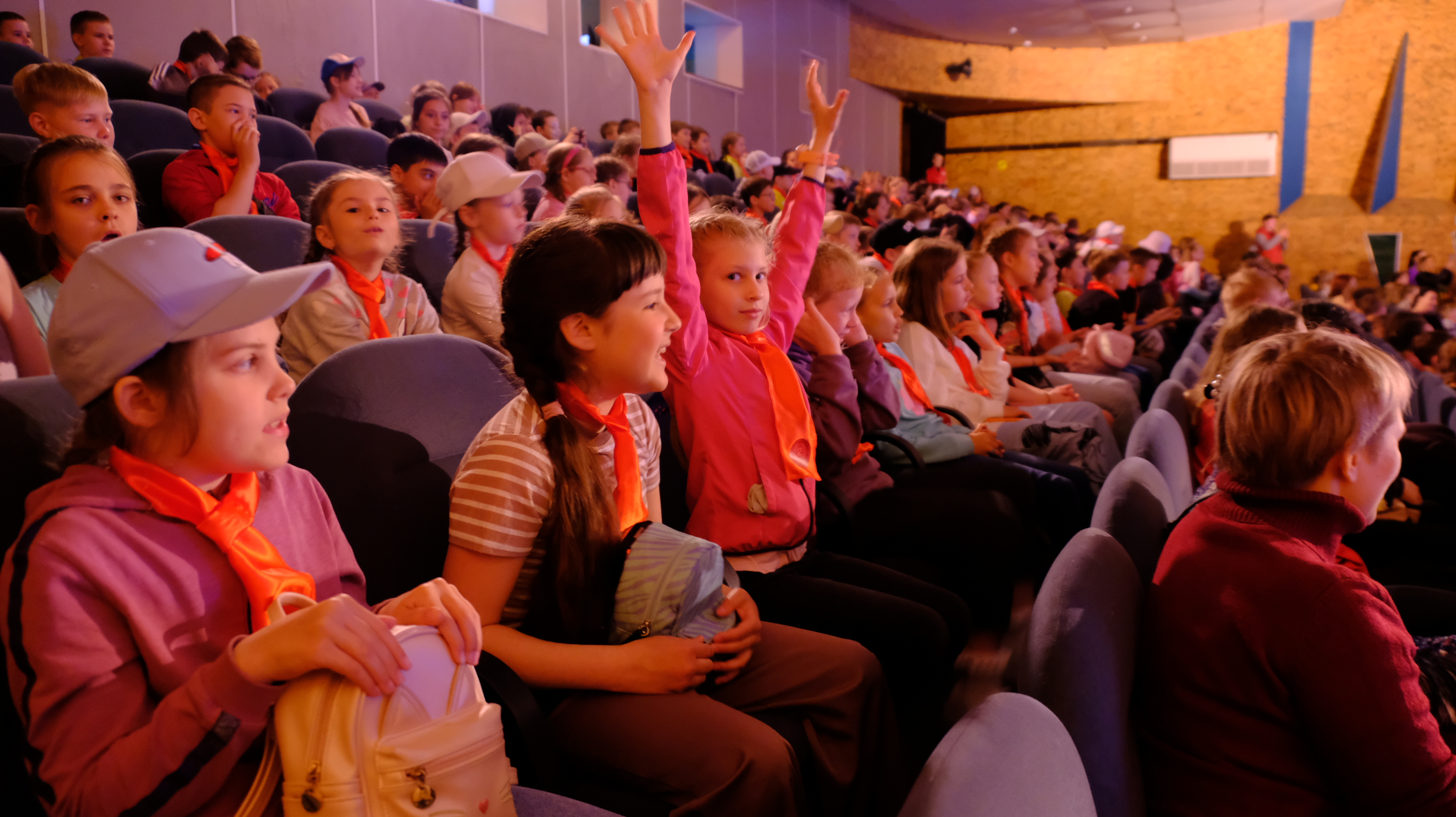 Началась череда поздравлений с праздничного мероприятия в Доме искусств. В большом зале - ребята из малообеспеченных семей, пришкольных лагерей, детских садов, всего около 900 детей и взрослых.