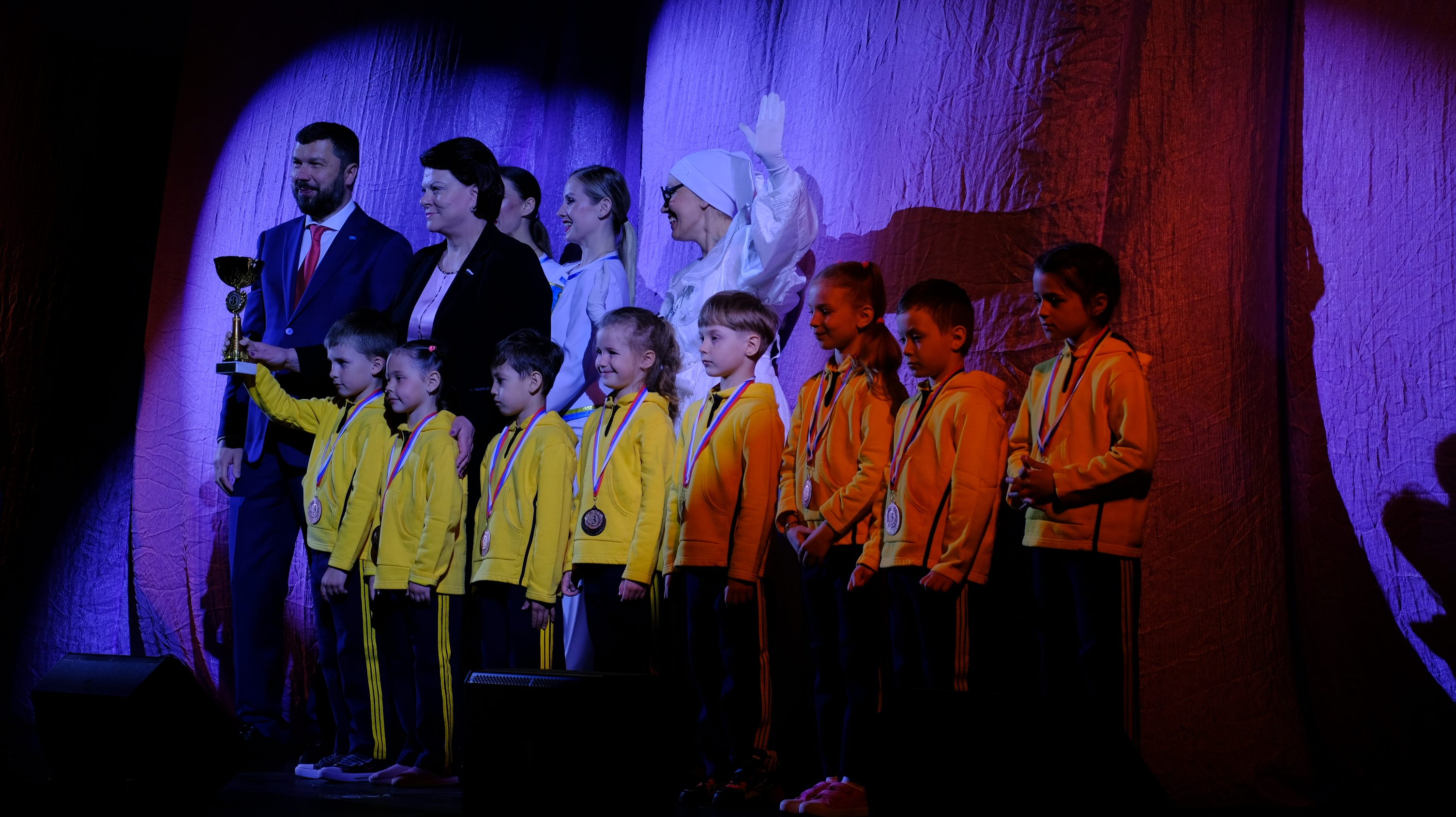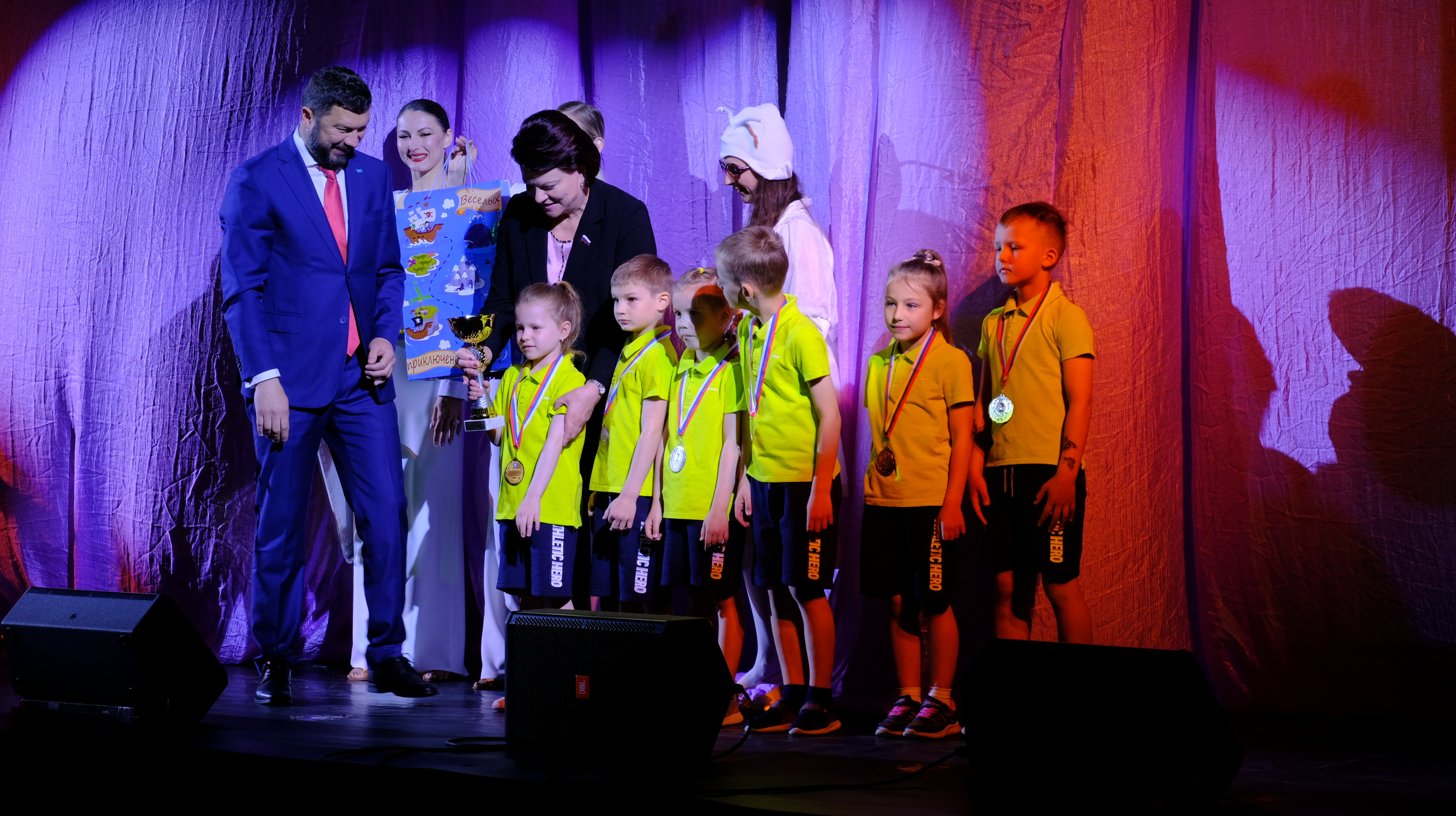 Марина Оргеева и Евгений Любивый провели церемонию награждения победителей спартакиады муниципальных дошкольных образовательных учреждений Калининграда. Победителем по количеству очков в общем зачёте стала команда 105-го детского сада, второе место у детского сада № 2, третье место заняли воспитанники детского сада № 56.