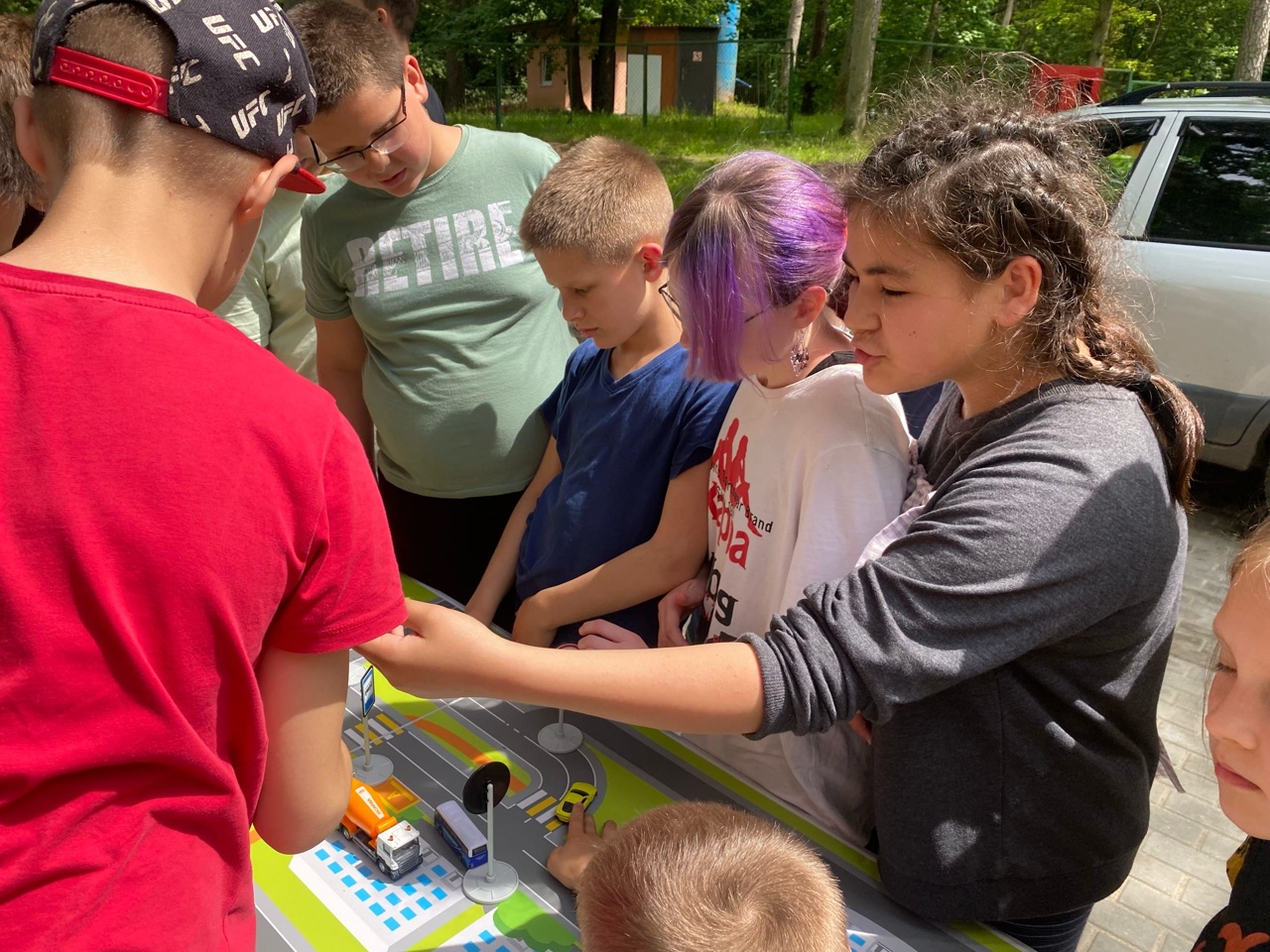 Ребят, отдыхающих в загородном центре «Чайка», тоже ждал сюрприз: в лагерь приехал мобильный автогородок «Лаборатория безопасности», который был развернут на территории учреждения. Педагоги Станции юных техников совместно с начальником отделения пропаганды БДД УГИБДД УМВД России по Калининградской области, подполковником полиции Владимиром Бегунковым и инспектором (по пропаганде БДД) ОГИБДД МО МВД России «Багратионовский», лейтенантом полиции Екатериной Красновой провели профилактические занятия по основам безопасного поведения на дороге. С помощью специального оборудования дети моделировали дорожные ситуации на макете улично-дорожной сети, повторили правила для велосипедистов, отработали алгоритм безопасного перехода проезжей части. Дети с интересом выполняли задания и отвечали на вопросы. Все ребята получили в подарок световозвращающие брендированные брелоки, а учителя и воспитатели – комплекты рабочих тетрадей с интересными и полезными заданиями по дорожной азбуке.
