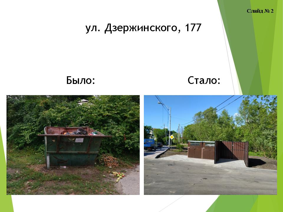 Обустройство вышеуказанных контейнерных площадок планируется выполнить согласно новому внешнему виду, разработанному главным архитектором города (ограждение «Панель»), с размещением внутри площадки пластиковых контейнеров объемом 1,1 куб. м.