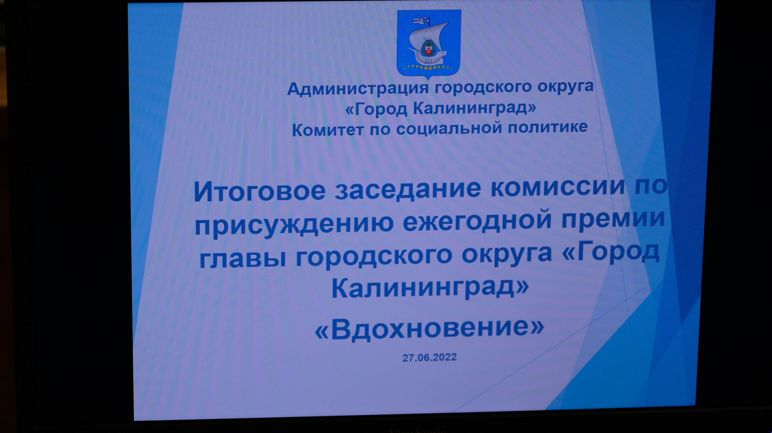 28 июня в администрации Калининграда под руководством председателя комитета по социальной политике Алексея Силанова состоялось итоговое заседание конкурсной комиссии по присуждению премии «Вдохновение-2022».