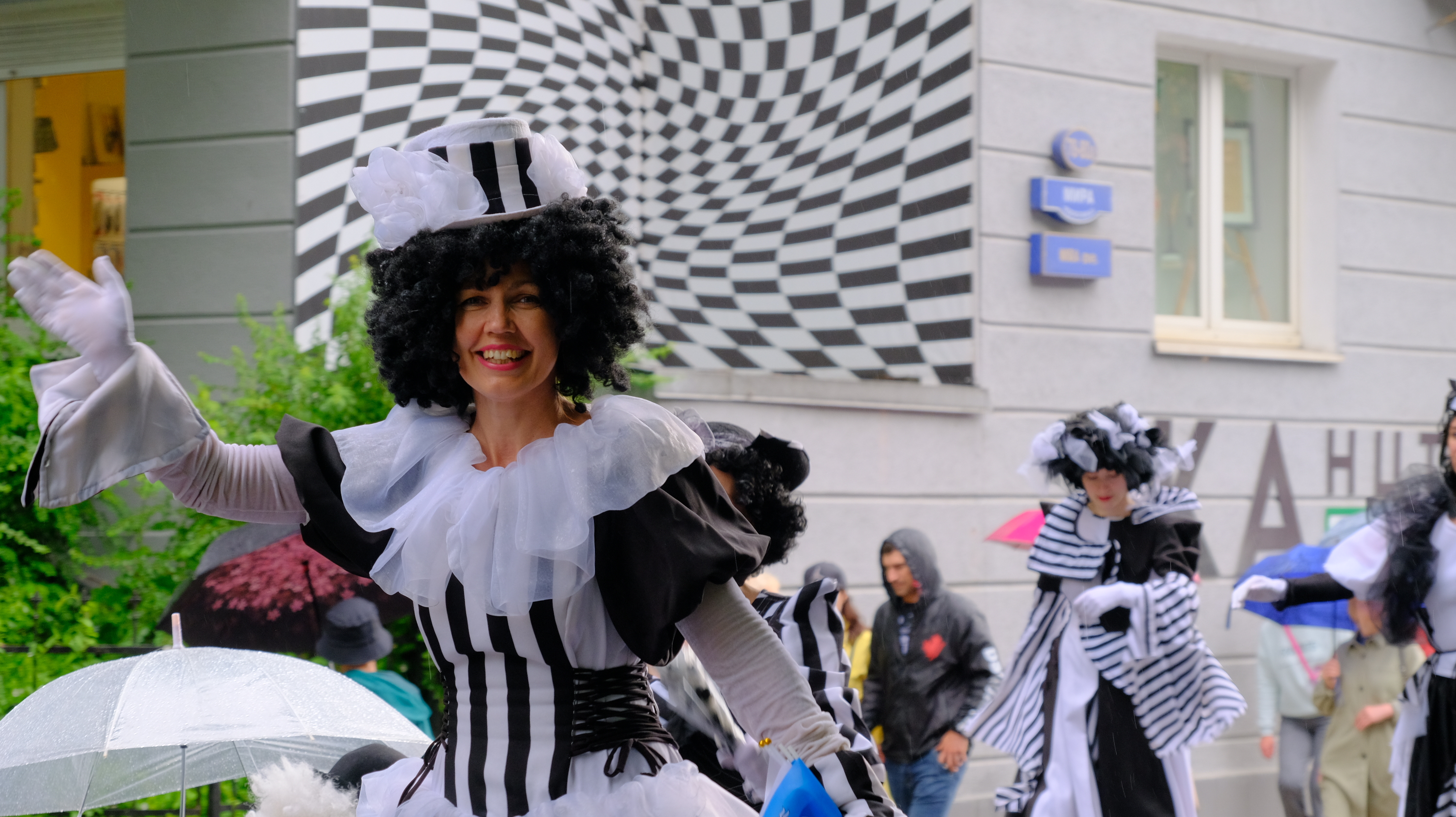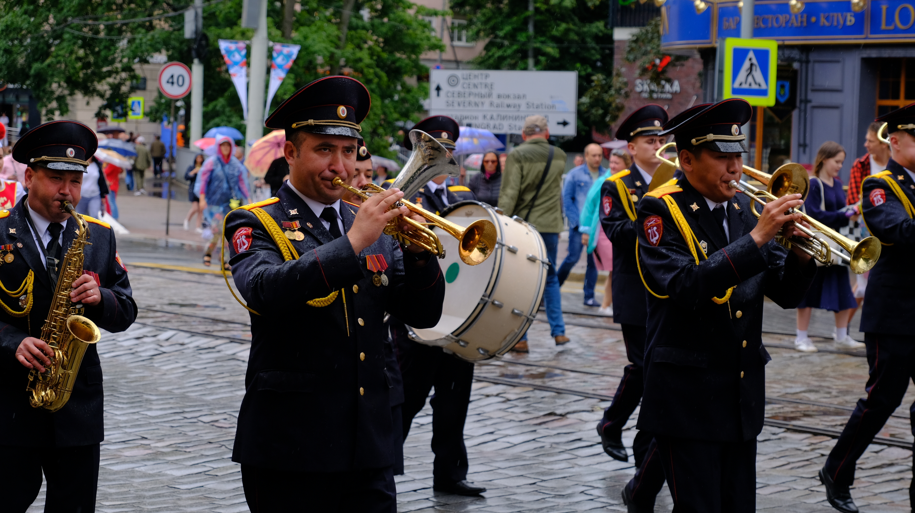 От областного драматического театра до парка Центральный колонна во главе с ансамблем барабанщиц сделала несколько остановок, чтобы насладиться искусством музыкальных и танцевальных коллективов, выступающих на концертных площадках вдоль всей пешеходной зоны на проспекте Мира.
