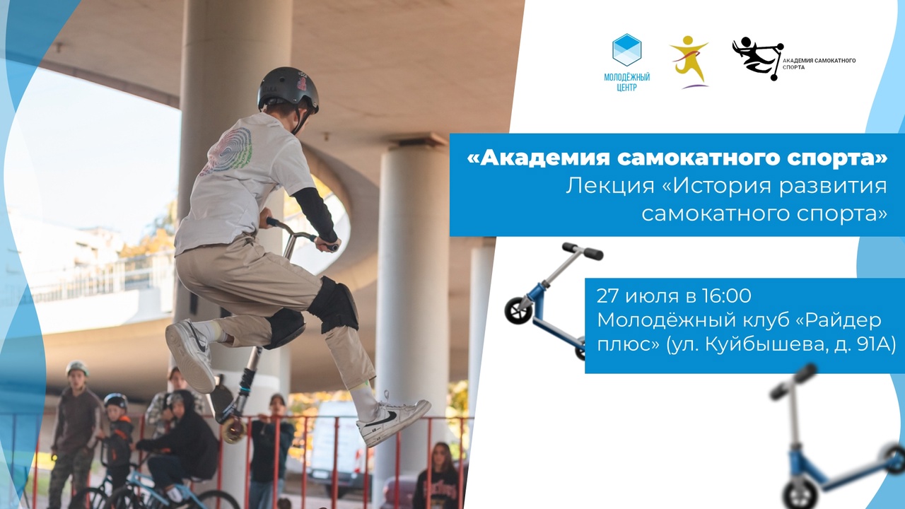 Первая лекция, посвящённая истории развития самокатного спорта, состоится 27 июля в 16:00 в молодёжном клубе «Райдер плюс», ул. Куйбышева, 91А.
