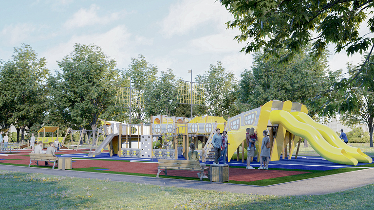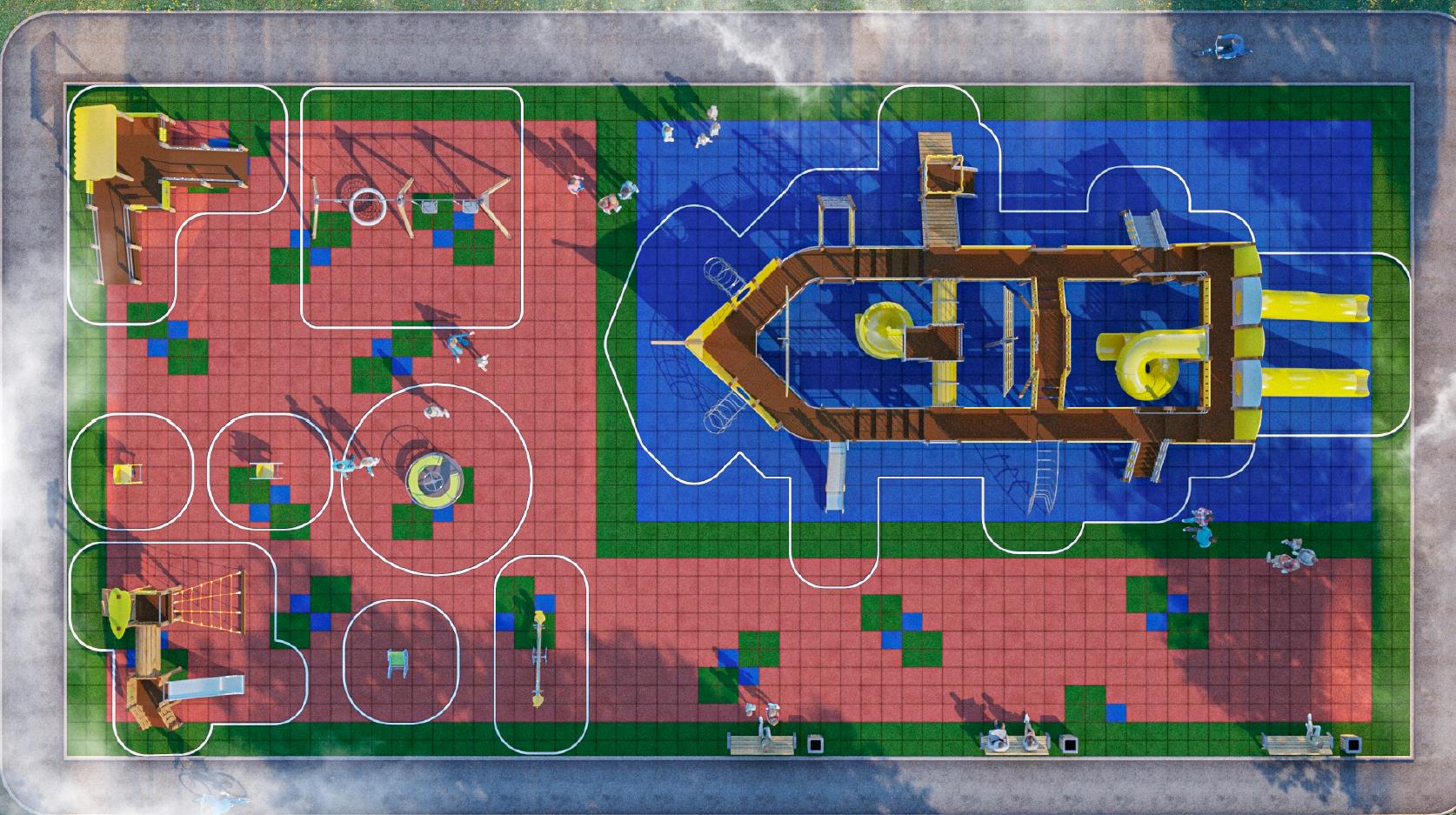 В соответствии с требованиями безопасности будет подготовлено основание для оборудования для надлежащей, надежной связи конструкций с землей, заменено покрытие из резиновой плитки и оборудование детской площадки.