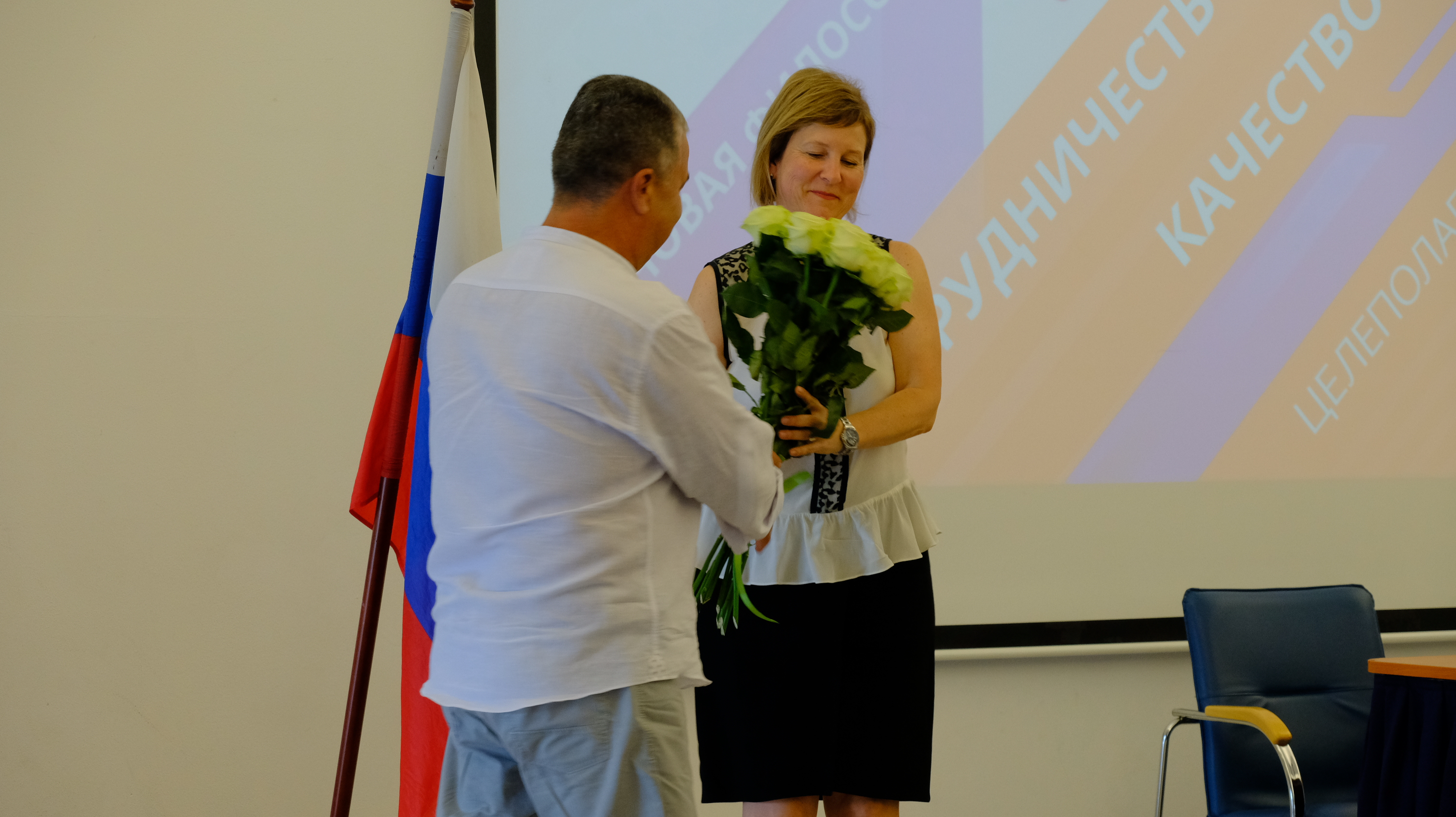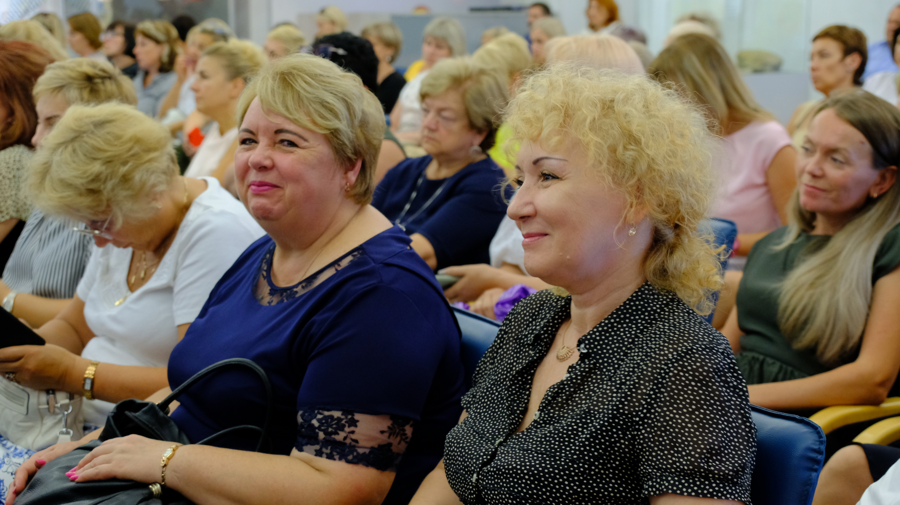 Елена Ивановна поздравила педагогов с новым учебным годом, пожелала им здоровья и успехов на профессиональном поприще. Подчеркнула, что главное не только построить новые школы, оснастить их современным оборудованием, но и воспитать любовь к родному городу, к Родине, взрастить в детях человечность и отзывчивость.