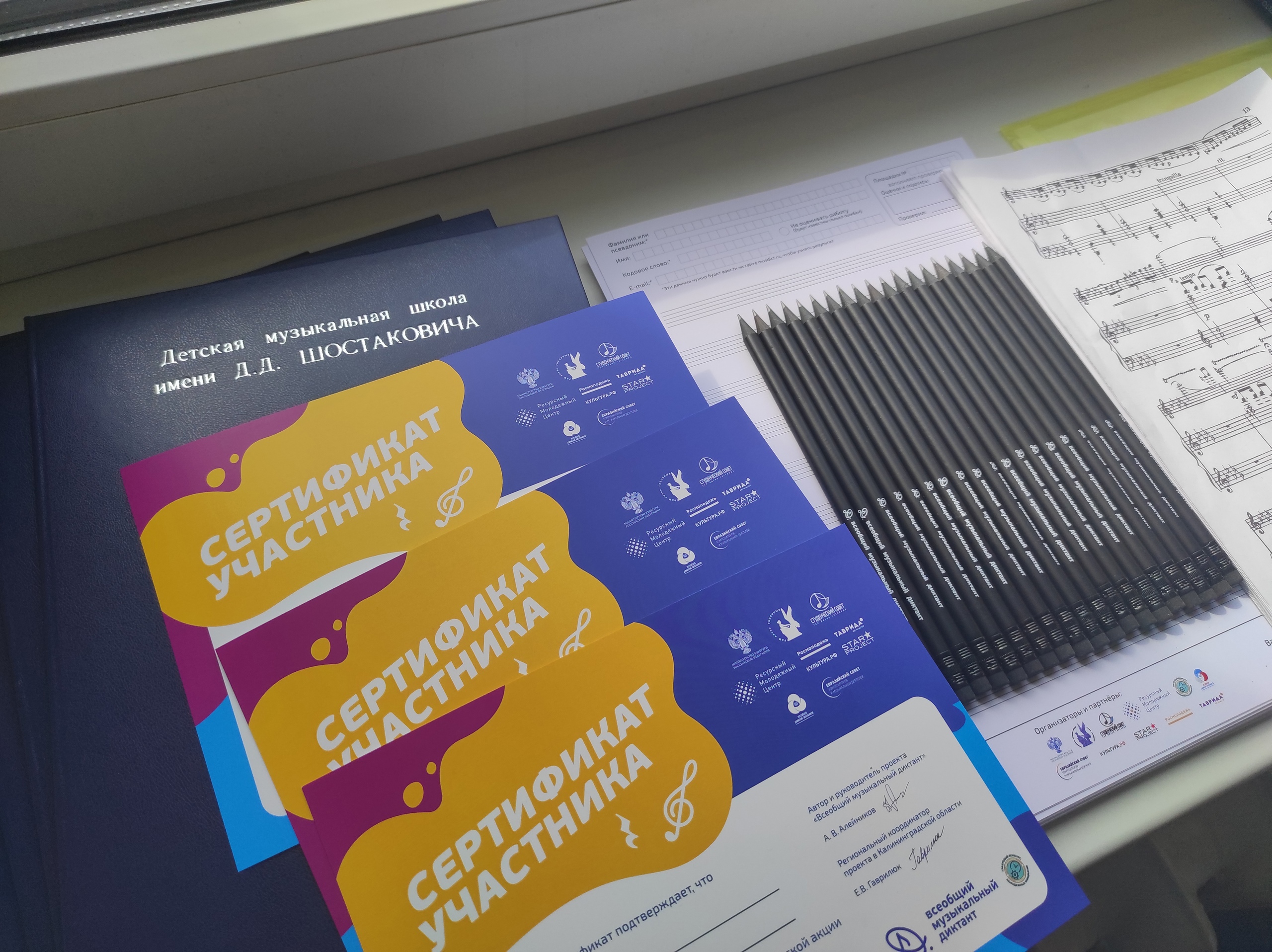 Всеобщий музыкальный диктант проводится в России с 2018 года при поддержке Российской академии музыки имени Гнесиных и Ассоциации музыкальных образовательных учреждений. В Калининградской области первый диктант прошел в 2021 году, объединив 116 участников.