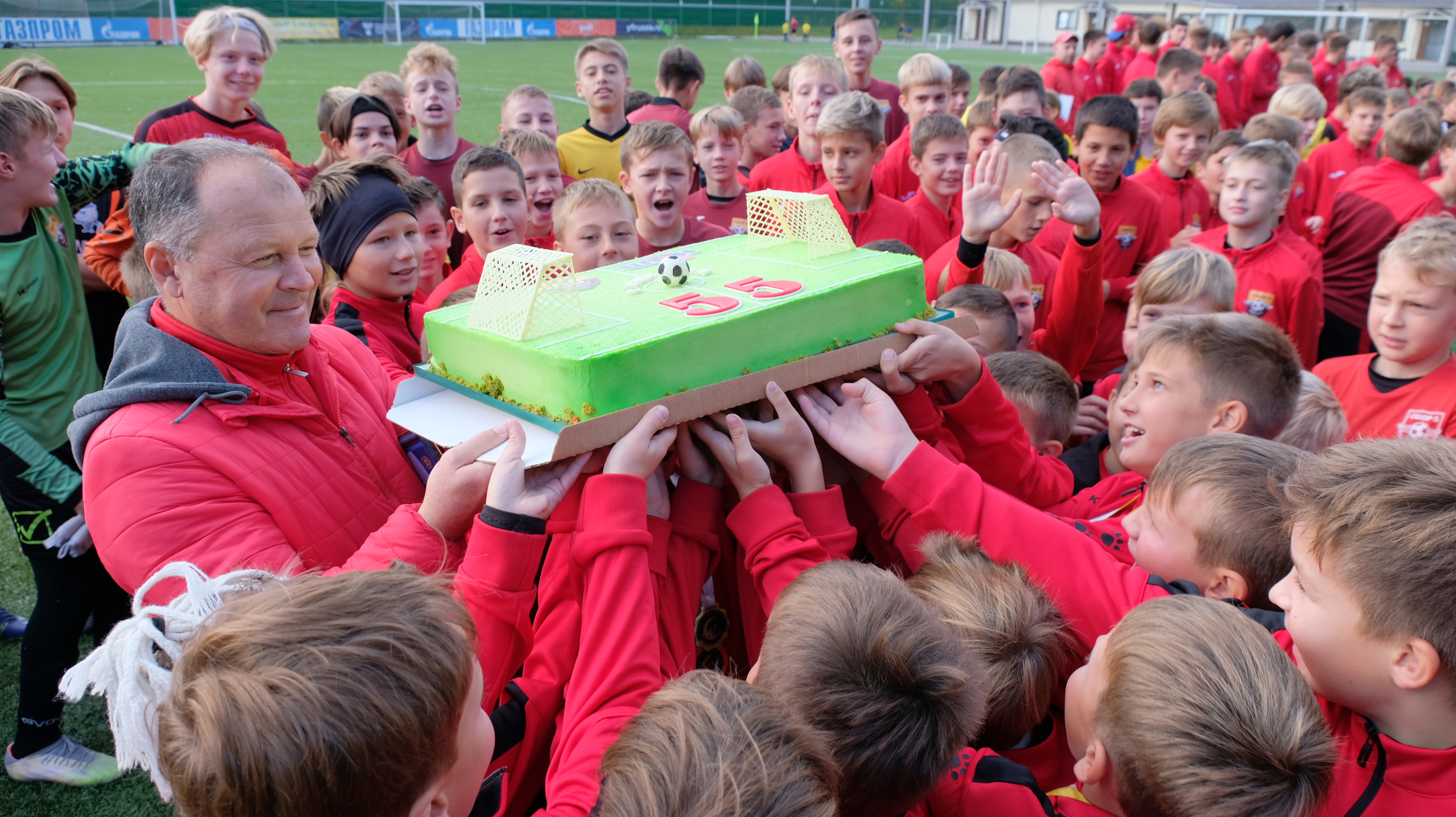 На стадионе “Пионер” как всегда многолюдно, именно здесь базируется муниципальная спортшкола олимпийского резерва по футболу, в которой занимаются 1500 ребят. Но сегодня на стадионах в конце проспекта Мира необычная тренировка, 29 сентября в гости к юным спортсменам приехали их родители, футбольные функционеры региона и руководство Калининграда. Приехали чтобы поздравить МАУ СШОР № 5 по футболу с юбилеем, главной кузнице футбольных звёзд города - 55 лет.