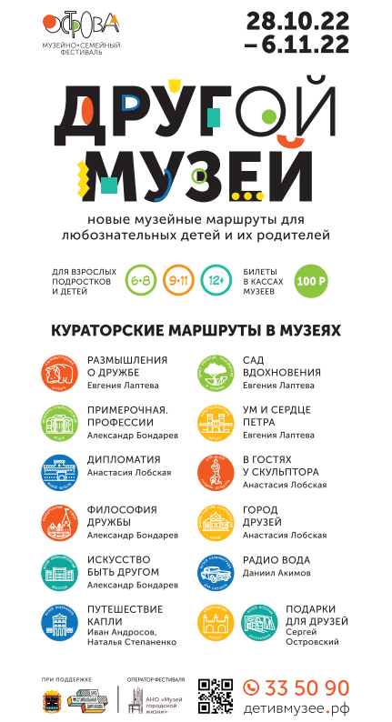 Каждый музей подготовил авторские программы для трех возрастов: 6-8, 9-11, 12+. Всего в программе фестиваля 12 маршрутов. Фестивальные программы музейные команды разрабатывали совместно с приглашенными кураторами. В этом году программы курировали: