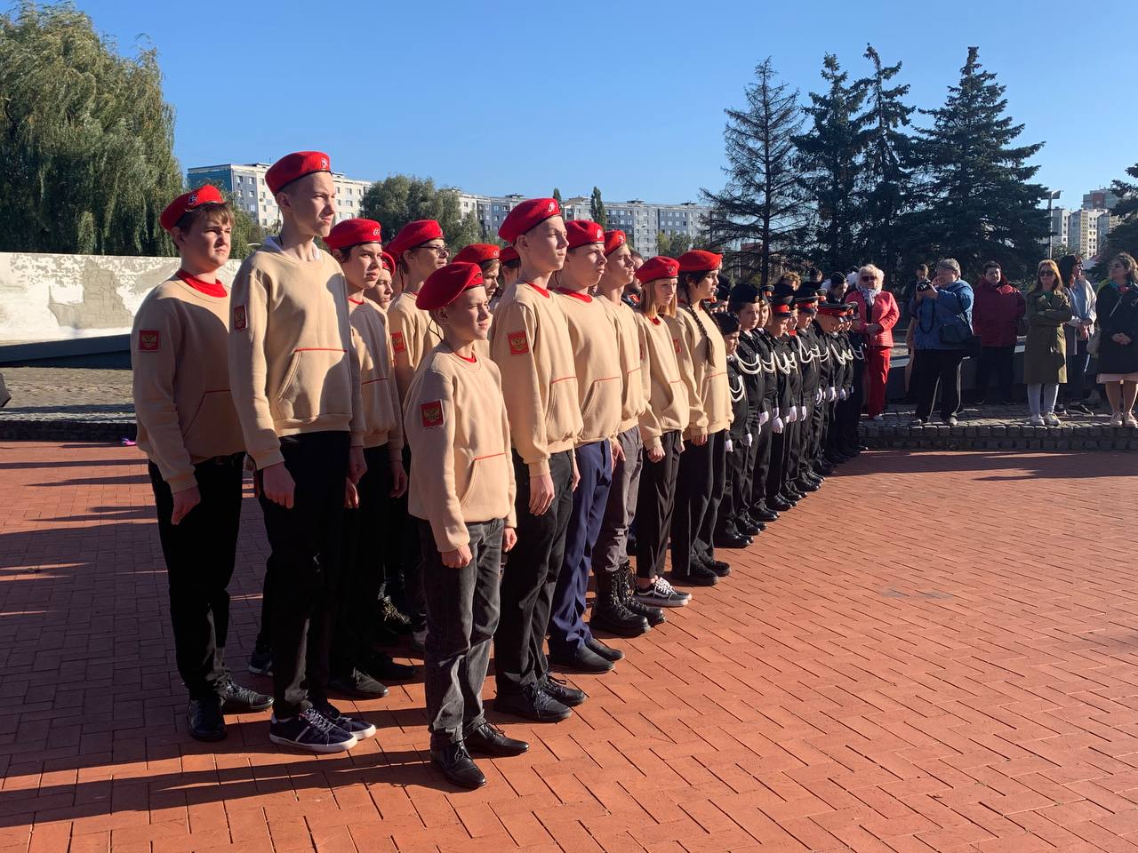 Сегодня, 7 октября, у памятного знака морякам-балтийцам состоялась торжественная церемония посвящения калининградских школьников в ряды общественного детско-юношеского военно-патриотического движения «Юнармия».