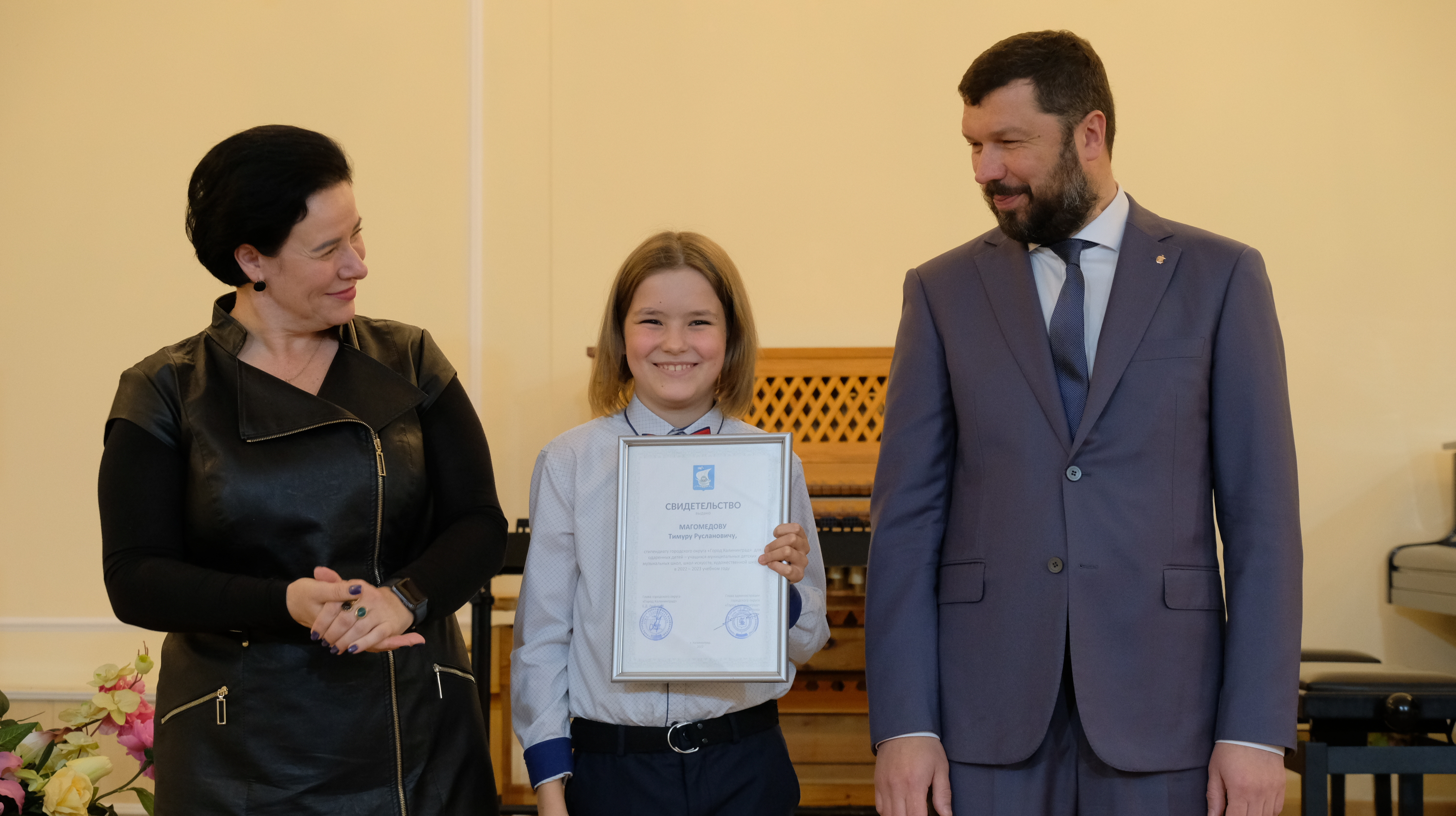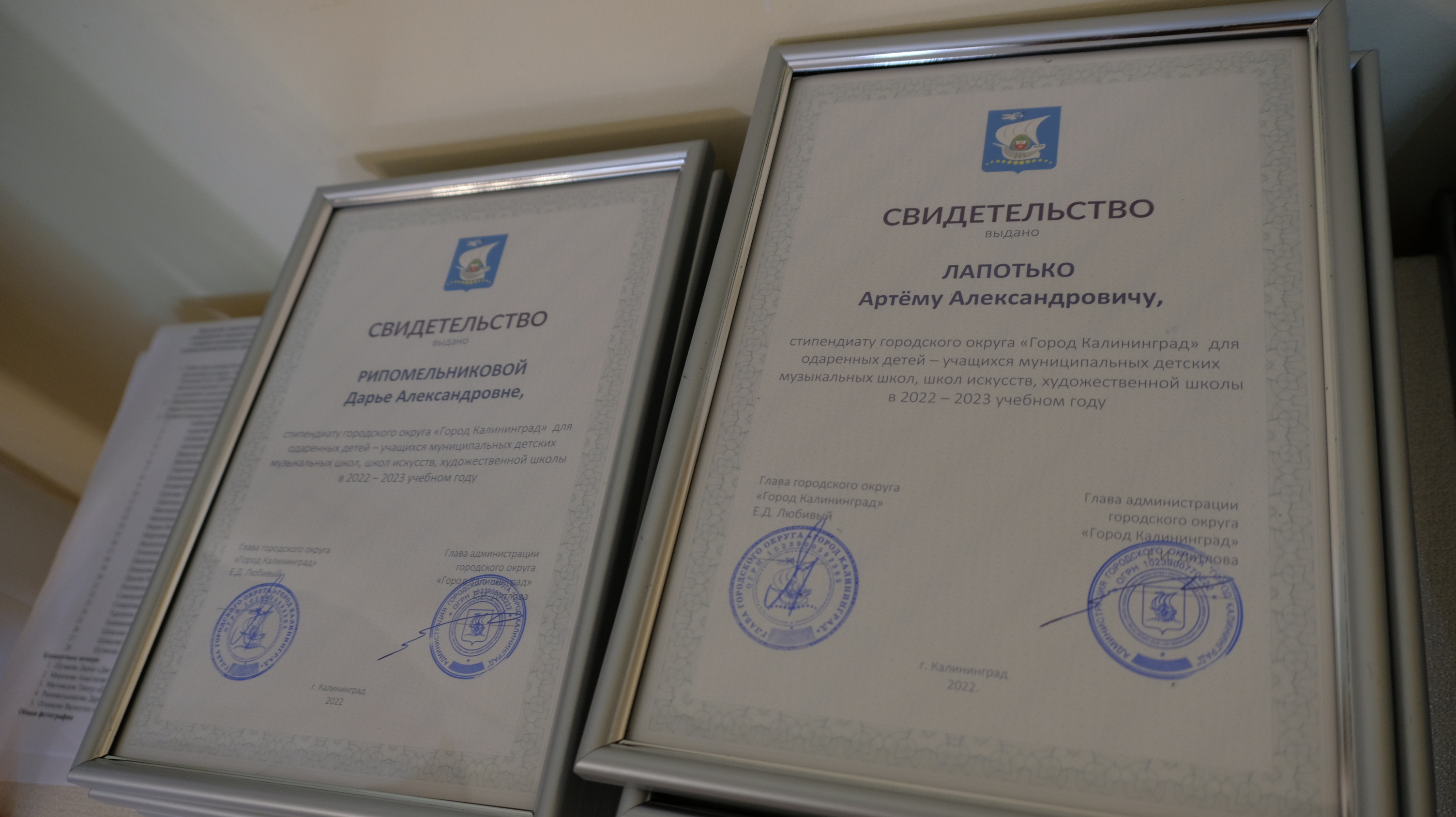 11 октября 2022 года глава администрации Калининграда Елена Дятлова и глава города Евгений Любивый вручили свидетельства стипендиатов городского округа «Город Калининград» учащимся муниципальных детских музыкальных школ, школ искусств и художественной школы Калининграда, достигшим больших успехов в разных областях творчества.