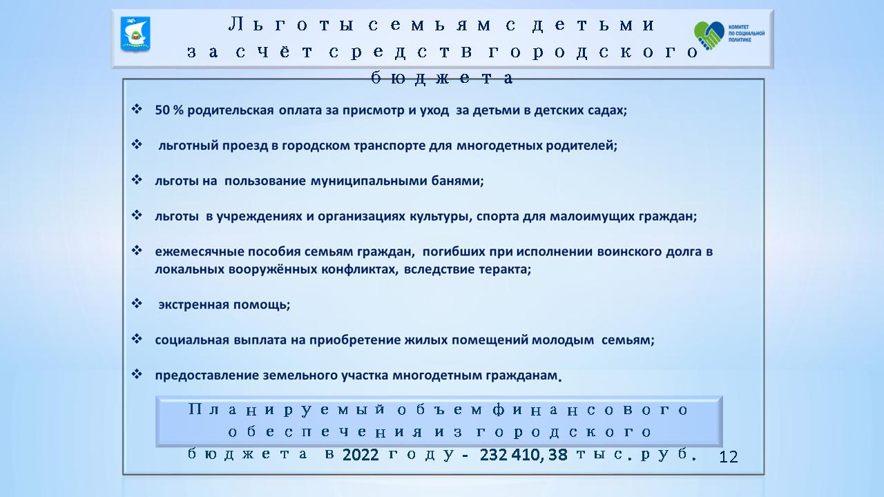 Всего муниципалитетом оказывается малоимущим семьям более 40 различных видов помощи. Общий объем финансовых затрат на эти цели в текущем году составляет 553,9 млн рублей, из них более 232,0 млн рублей – средства городского бюджета.