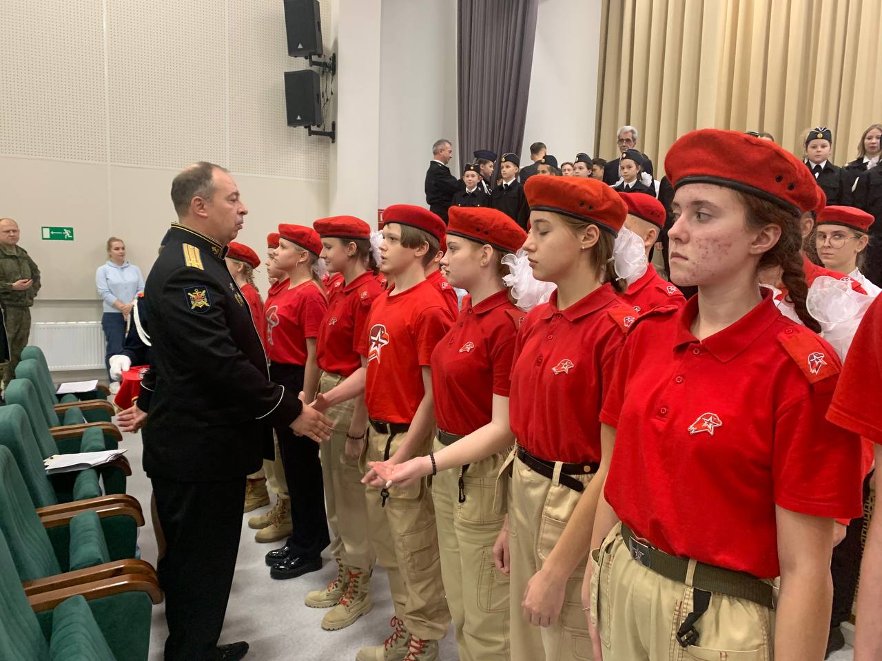 Нагрудные знаки детско-юношеского военно-патриотического движения «Юнармия» калининградским школьникам вручали руководители местного и регионального штабов «Юнармии», представители городского Совета ветеранов войны и труда, правоохранительных органов, администрации города. По традиции завершилась церемония посвящения в юнармейцы исполнением гимна этой общественной организации.