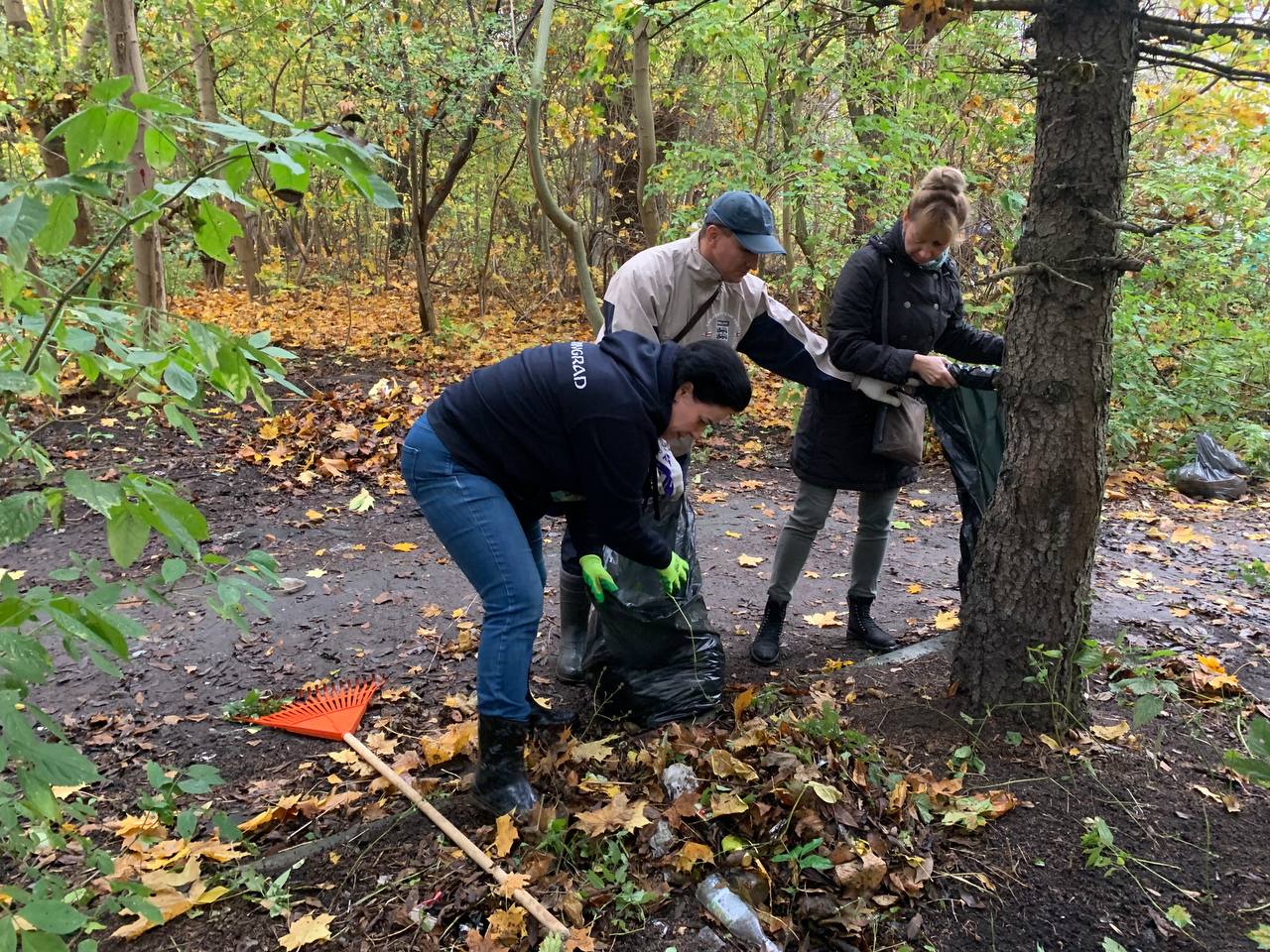 Глава администрации Калининграда Елена Дятлова вместе с сотрудниками администрации и представителями Городского совета депутатов работали в зеленой зоне в районе улицы Маршала Борзова.