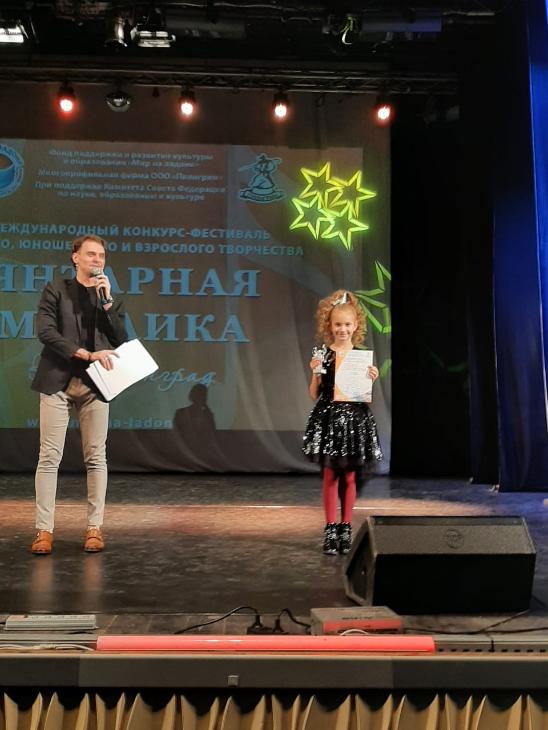 6 ноября в Калининграде проходил Международный фестиваль-конкурс «Янтарная мозаика», в котором принял участие театр танца «Вишня» с девятью хореографическими постановками (педагоги дополнительного образования Блинова Г.В., Дудинова Ю.Ю.). По итогам выступления и по решению международного жюри данный коллектив был удостоен девяти дипломов – победителя в своих возрастных категориях и диплома Гран-При за яркую авторскую конкурсную программу всего коллектива. В номинации сольного пения в многожанровых фестивалях-конкурсах образцовая вокальная студия «Вдохновение» была отмечена двумя дипломами победителя (педагог дополнительного образования Моторина Л.А.), также образцовый ансамбль эстрадной песни «Конфетти» стал обладателем диплома первой степени (педагог дополнительного образования Захарова С.Г.).