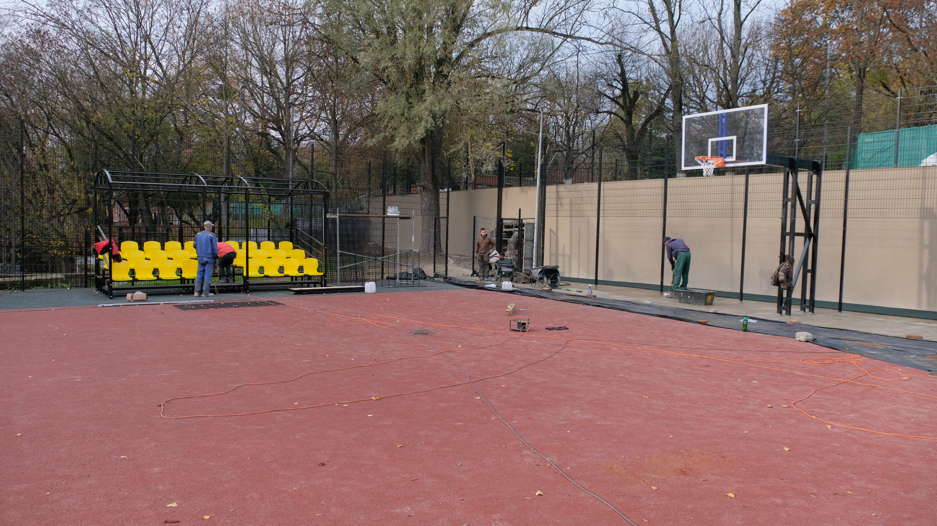 Подрядной организацией ООО «Экопарк-Запад» в июне-августе 2022 г. выполнены работы по ремонту спортивных площадок (демонтаж старого спортивного оборудования; монтаж спортивного оборудования воркаут-площадки и стоек волейбольных универсальных (волейбол, бадминтон), устройство покрытий из резиновой крошки воркаут-площадки и волейбольно-теннисной площадки, нанесение разметки беговых дорожек, устройство части ограждения, ремонт прыжковой ямы). Стоимость работ составила 3,0 млн руб. (ОБ – 2,4 млн руб., ГБ – 0,6 млн руб.).