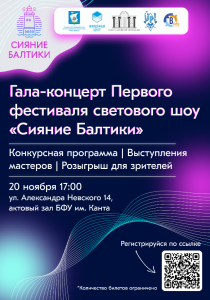 20 ноября в 17:00 в актовом зале БФУ им. И. Канта (ул. А. Невского, 14) состоится первый фестиваль светового шоу в Калининградской области «Сияние Балтики». Вход свободный.