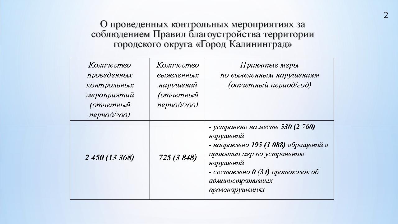 Специалистами комитета проведено 2 450 мероприятий. В том числе - 963 мероприятия по контролю за санитарным состоянием контейнерных площадок; 160 - по контролю за санитарным состоянием скверов и зеленых зон; 1 300 - по контролю за санитарным состоянием территорий. В ходе выездов выявлено 725 нарушений. Также выявлено 27 транспортных средства, имеющих признаки брошенных.