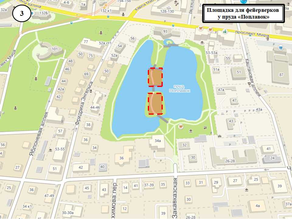 Согласно законодательству, администрация города должна была определить места разрешённого использования пиротехники. В городе таких 13 адресов: