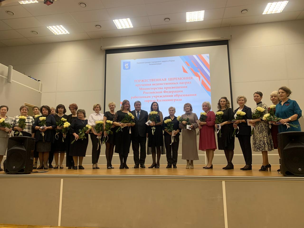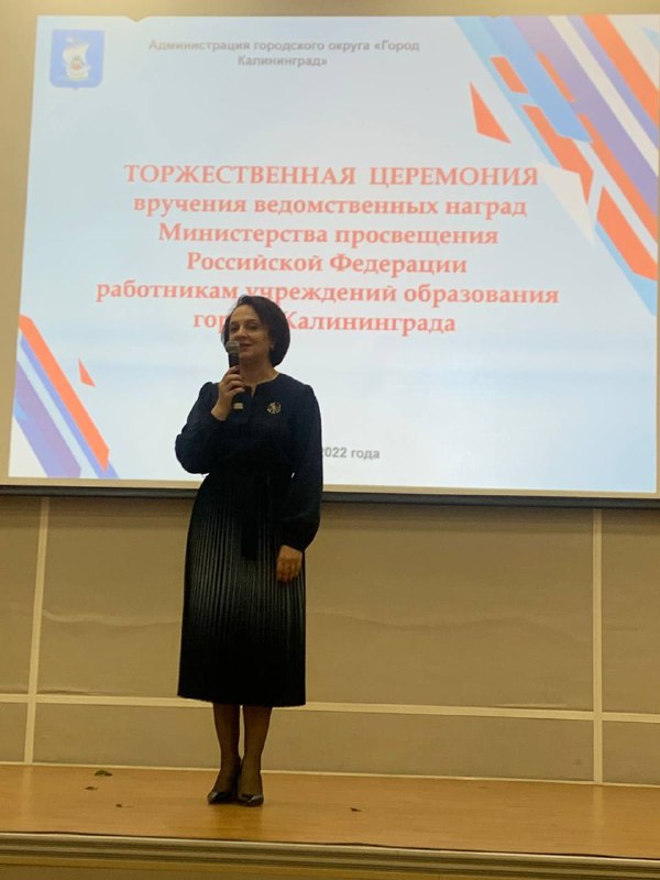 29 декабря 2022 года в гимназии № 22 состоялась торжественная церемония награждения руководящих и педагогических работников образовательных учреждений города Калининграда ведомственными наградами – ведомственным знаком «Отличник просвещения», нагрудным знаком «Почетный работник сферы образования Российской Федерации» и Почетной грамотой Министерства просвещения Российской Федерации.