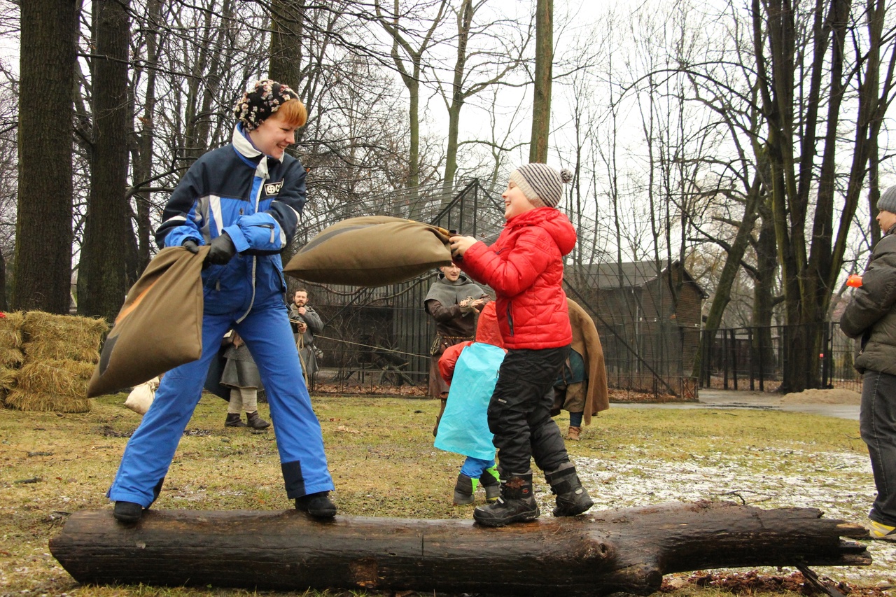 «Деревня викингов». Военно-исторический клуб «Ватага» представит для гостей зоопарка традиционные масленичные игры. Бои подушками, сражение на мечах и многое другое.