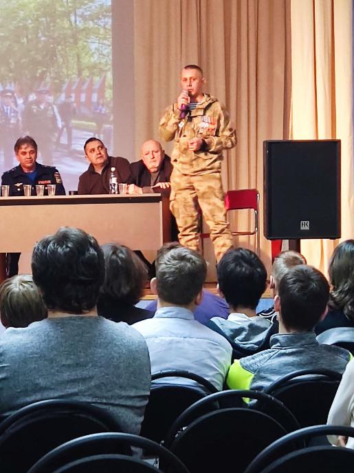Организаторами выступили: библиотека № 6, Дворец культуры "Машиностроитель" и общественная организация "Ассоциация воинов интернационалистов Калининградской области". В формате живого общения со школьниками прошла беседа, в ходе которой выступили непосредственные участники военных действий в Афганистане, Чечне, на Северном Кавказе, участники СВО: Анатолий Ковалев - председатель Региональной Общественной организации "Ассоциация воинов интернационалистов Калининградской области", ветеран боевых действий в Афганистане, старший сержант запаса; Владимир Мичурин - генерал-майор в отставке, председатель Общественной Организации ветеранов "Карибского кризиса"; Юрий Демин - подполковник в отставке, заместитель Председателя Региональной Общественной организации "Ассоциация воинов интернационалистов Калининградской области", ветеран боевых действий в Афганистане, ветеран войны на Северном Кавказе; Дмитрий Латушкин - ветеран боевых действий на Северном Кавказе, депутат Законодательного собрания Калининградской области; Валерий Баслык - капитан 3 ранга в запасе, ветеран боевых действий в Анголе, Эфиопии, Вьетнаме; Валентин Розин - сержант в запасе, ветеран боевых действий на Северном Кавказе, руководитель отделения Московского района города Калининграда Общественной организации "Ассоциация воинов интернационалистов Калининградской области"; Геннадий Лопацкий - майор в запасе, ветеран боевых действий в Афганистане, Ветеран войны на Северном Кавказе, участник СВО; руководитель отделения Ленинградского района города Калининграда Общественной организации "Ассоциация воинов интернационалистов Калининградской области", Ветеран СВО; Алексей Иванов - капитан запаса, ветеран боевых действий СВО на Донбассе, руководитель подразделения по работе с семьями и участниками СВО при ОО "Ассоциация воинов интернационалистов Калининградской области". Ветераны говорили о Родине, о чести, о смелости, об ответственности и правильных жизненных ориентирах. В глазах ребят читался неподдельный интерес, они активно задавали вопросы. В финале мероприятия в знак благодарности, учащиеся вручили ветеранам цветы.
