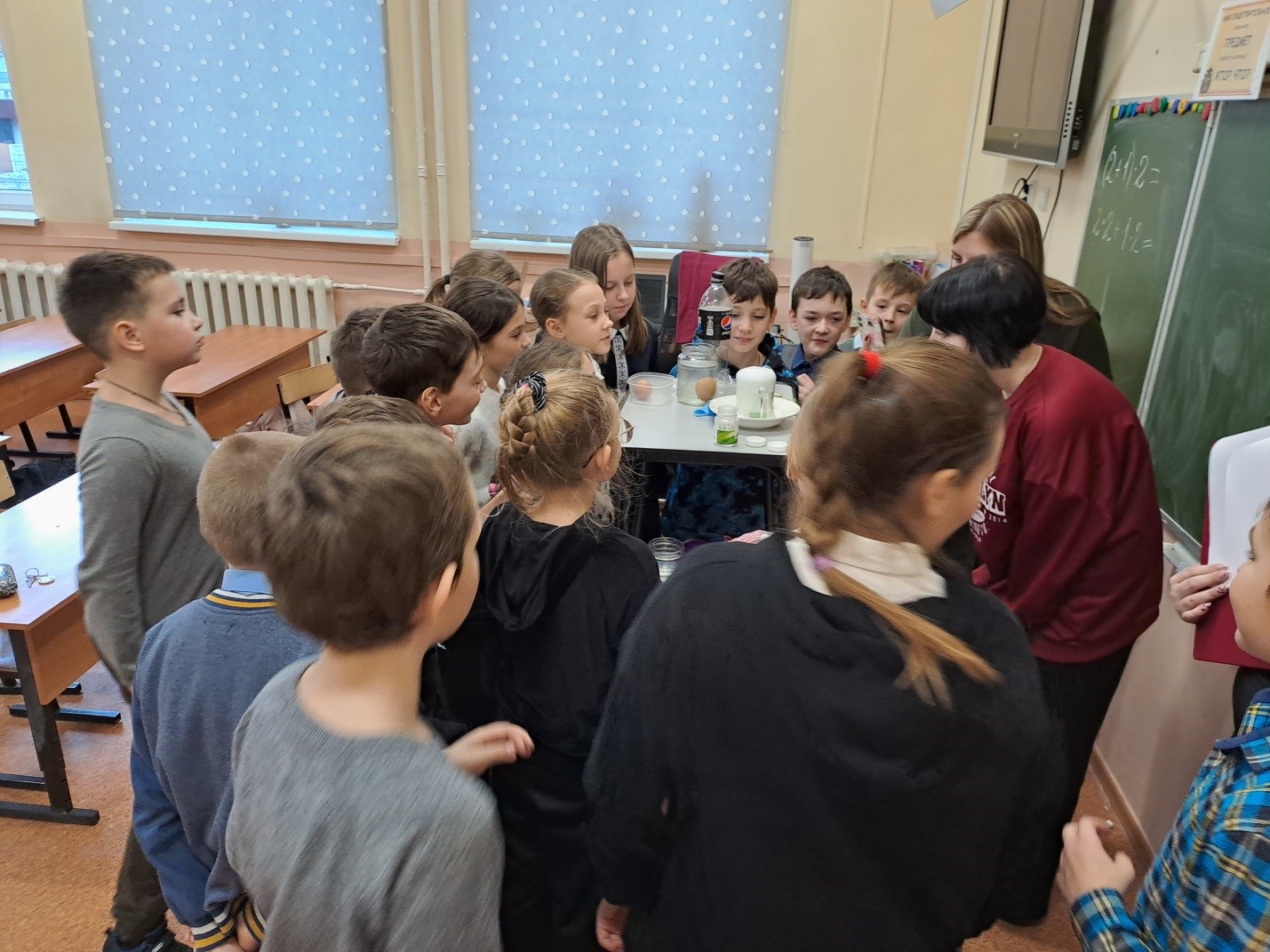 Накануне Дня науки в школе № 9 им. Дьякова П.М. для обучающихся 2-х классов прошли первые в их жизни уроки занимательной химии и физики, на которых ребята увидели удивительные превращения различных веществ, а одиннадцатиклассницы познакомили второклассников с некоторыми законами физики, продемонстрировав весёлые опыты.