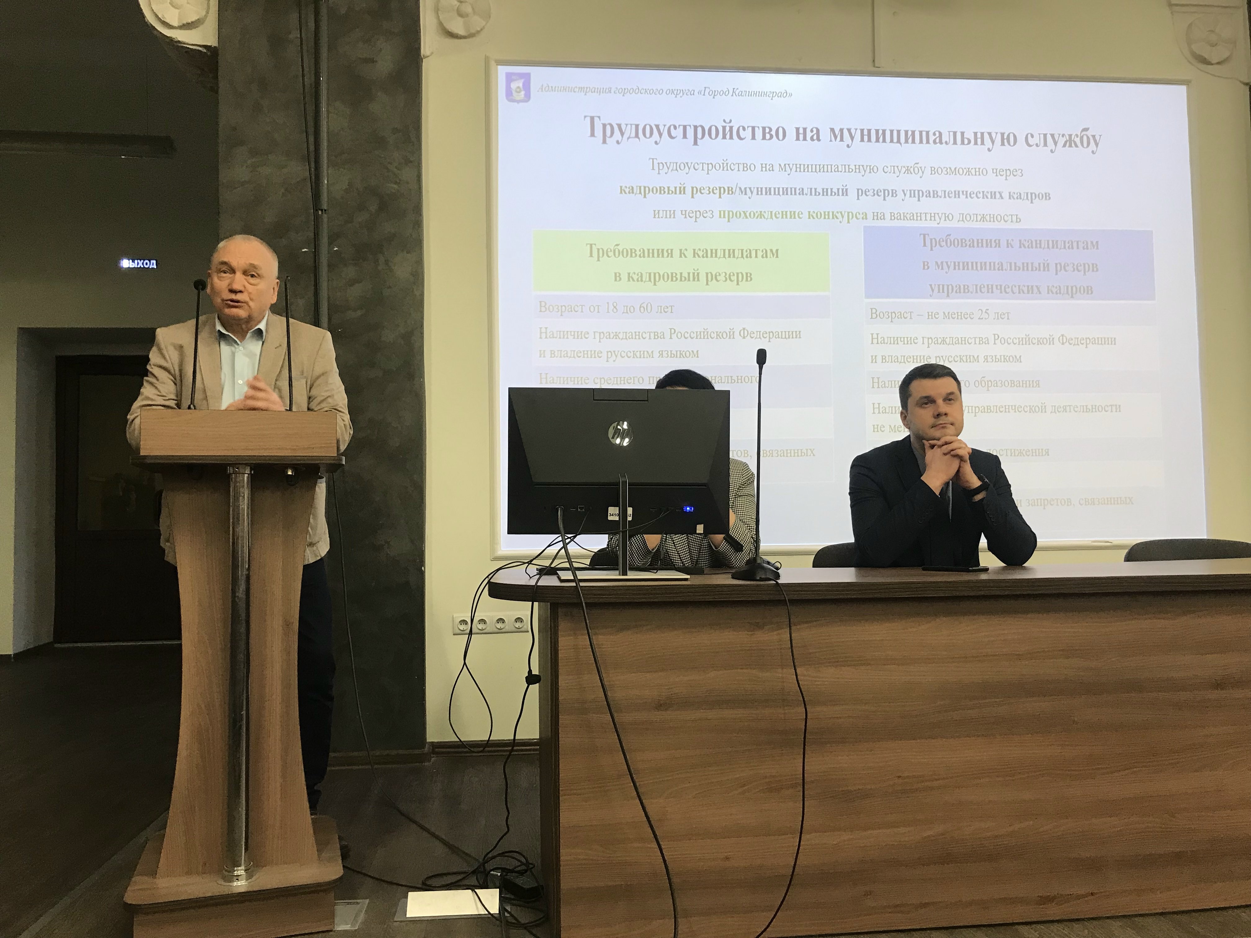 16 февраля прошла встреча представителей администрации городского округа "Город Калининград" со студентами БФУ им. И. Канта для привлечения молодых специалистов на муниципальную службу.