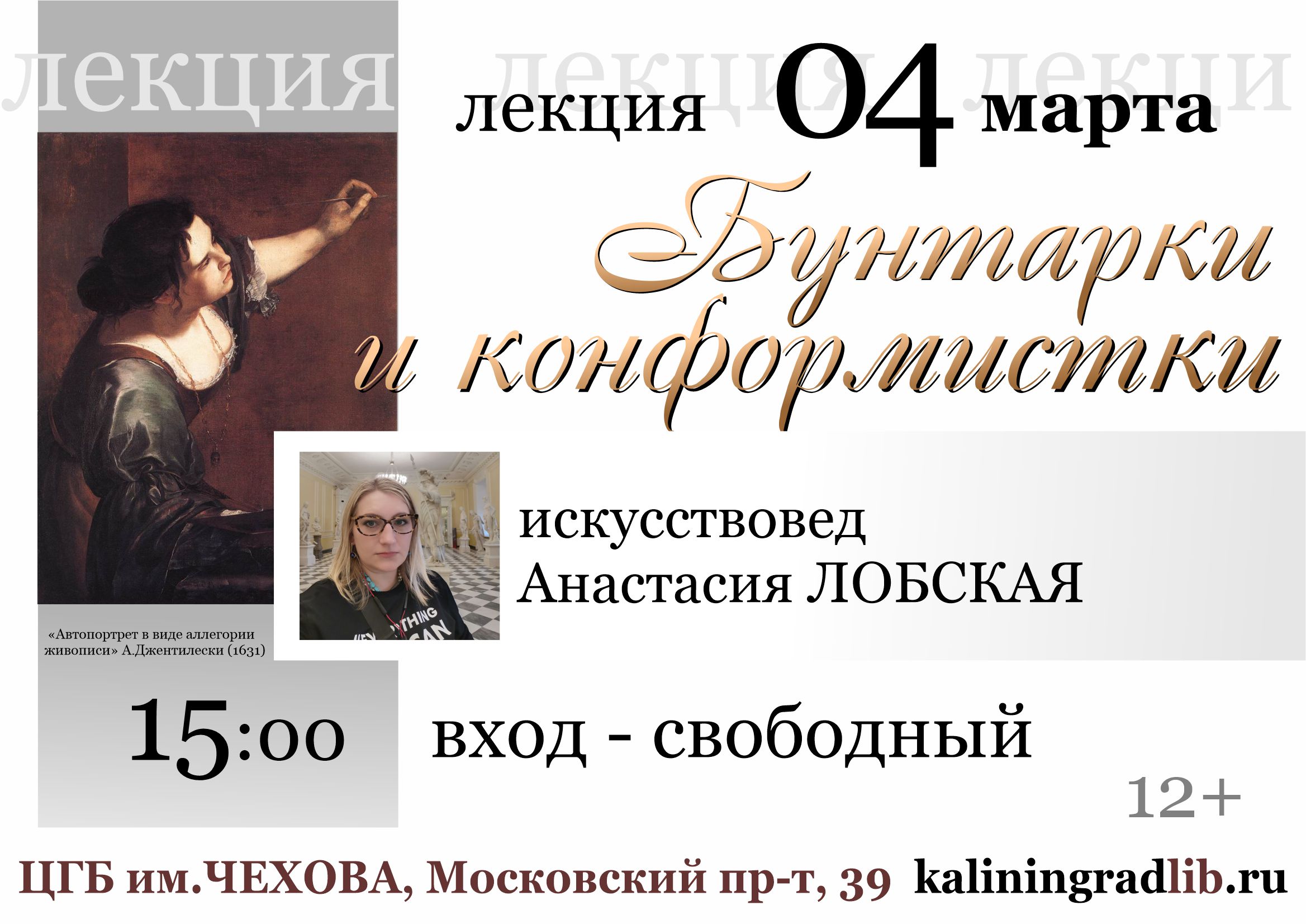 4 марта в 15.00 в «Чеховке» пройдёт лекция магистра искусствоведения Анастасии Лобской «Бунтарки и конформистки: истории и стратегии женщин-художниц».