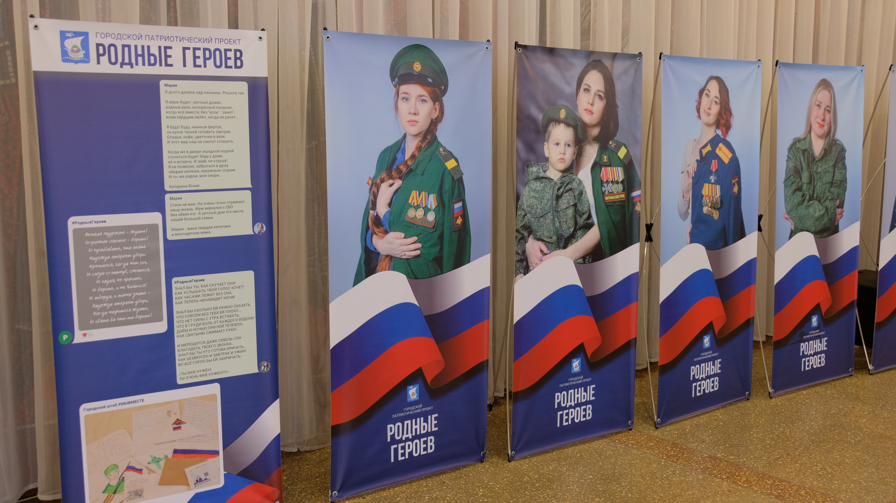 На выставке «Родные Героев» представлены портреты женщин, семей, чьи родные посвятили себя служению Родине. Это - фотоистории о красоте, вере, любви, стойкости и самоотверженности.