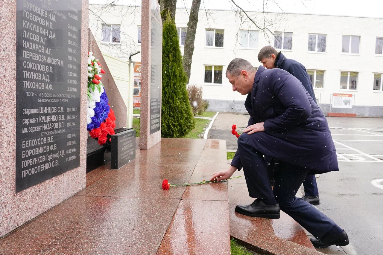 Торжественный митинг продолжился возложением цветов к памятнику военнослужащим и сотрудникам, погибшим при исполнении воинского и служебного долга, установленному на территории специального моторизованного полка.